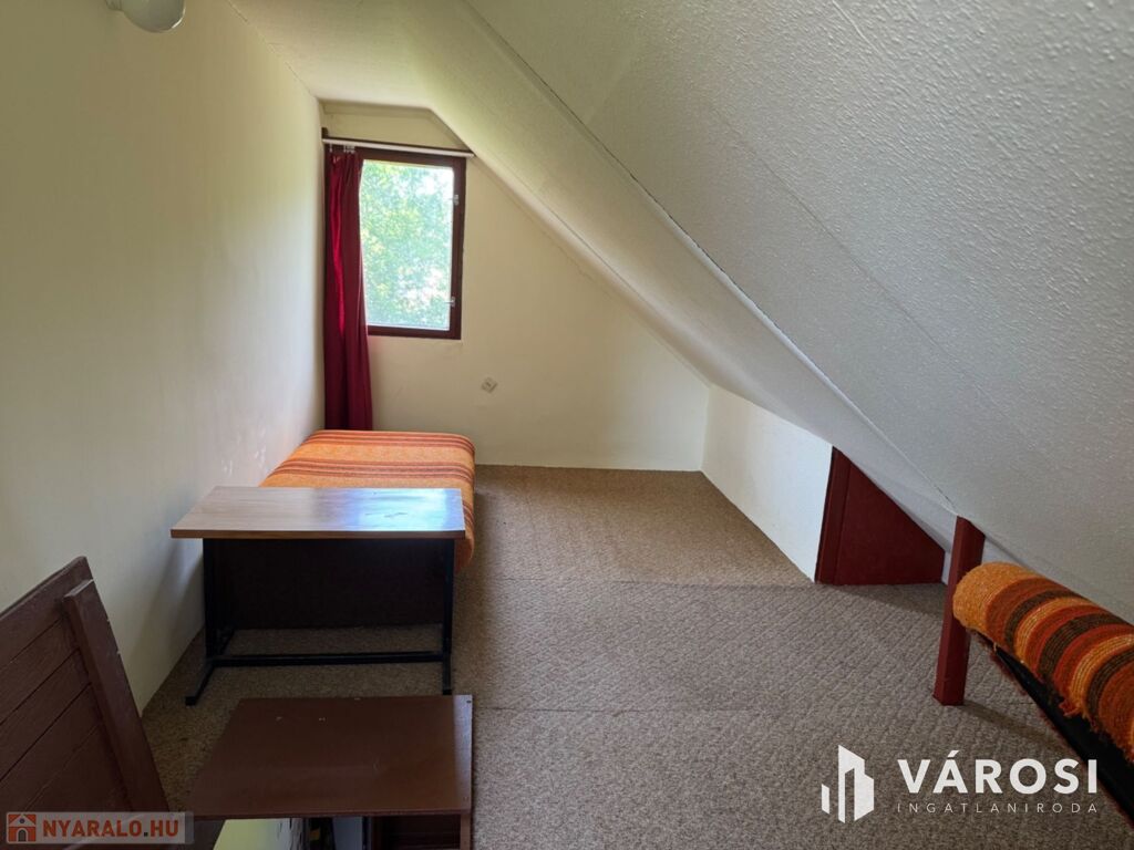 Az épület kétszintes, átlagos állapotú, ideális választás azoknak, akik szeretik a természet közelségét és a zöld övezet nyugalmát. A nyaralóban egy szoba, egy nappali és egy fürdőszoba található, melyek mind berendezettek, így az ingatlan azonnal használatba vehető. Az alacsony fenntartási költségeknek köszönhetően ez a nyaraló hosszú távon is kiváló befektetés. Az ingatlanban a közművek közül a víz és az áram van bent, ez utóbbi 16 A teljesítménnyel és éjszakai áram lehetőséggel. Amennyiben fatüzelésben gondolkozik az új tulajdonos, az is lehetséges, hiszen a kémény ki van építve.