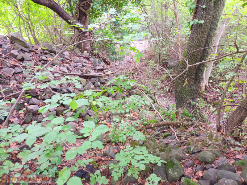 A telken egy autentikus, kő falazatú, 25 nm-es pince épület található, melynek tetőszerkezete és a födém sérült, viszont a falai jó állapotban vannak. Az épület az ingatlannyilvántartásban szerepel (tulajdoni lapon, térképen is), ezért lehetőség nyílik a felújítására. Az épület körül a terület egy része rendezett, kaszált, nagy része fás/bokros.
