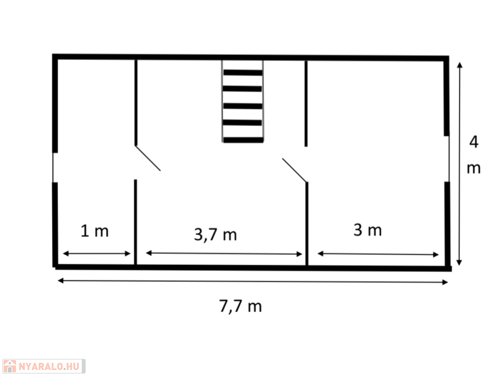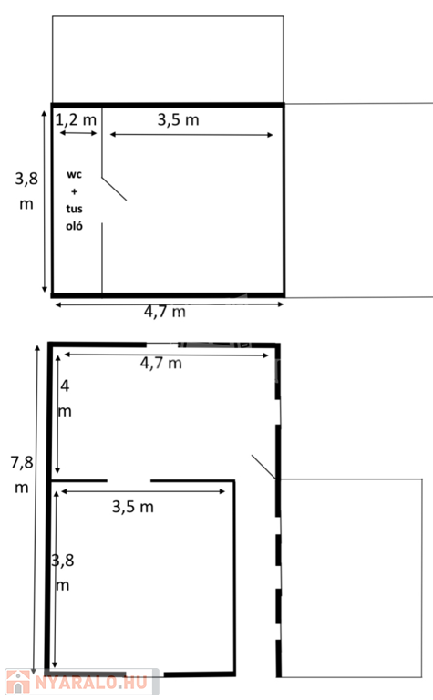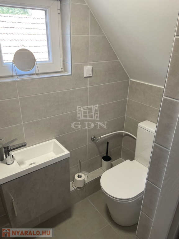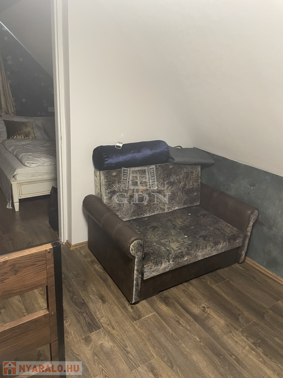 Emelet: hálószoba (1 franciaágy + 1 egyszemélyes ágy), fürdőszoba, valamint az előtérben egy kihúzható vendégágy,