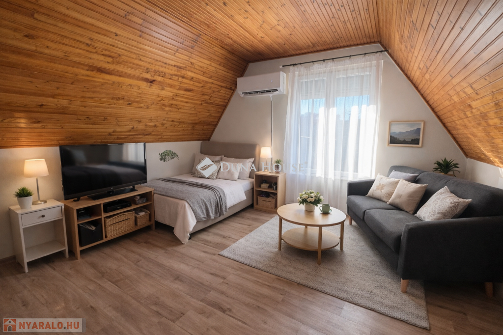 Harkány kedvelt üdülőterületén eladóvá vált egy belső kétszintes kialakítású, 80 m²-es hangulatos házikó, amelyhez 212 m²-es saját használatú kert tartozik. Az ingatlan elrendezése praktikus és kényelmes, akár állandó lakhatásra is alkalmas: