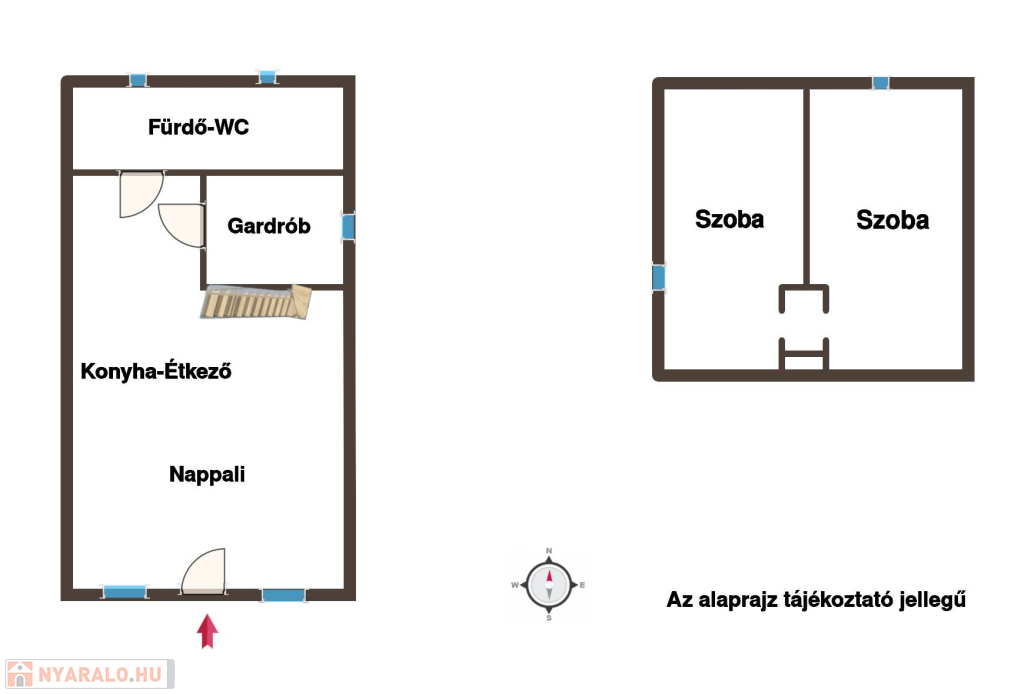 Az ingatlan nappali + 2 hálószobás elrendezésű, ideális nyaralónak vagy állandó lakhatásra is. Az elmúlt időszakban felújításon esett át: 10 cm hőszigetelést kapott, korszerű műanyag nyílászárók, modern burkolatok kerültek beépítésre.