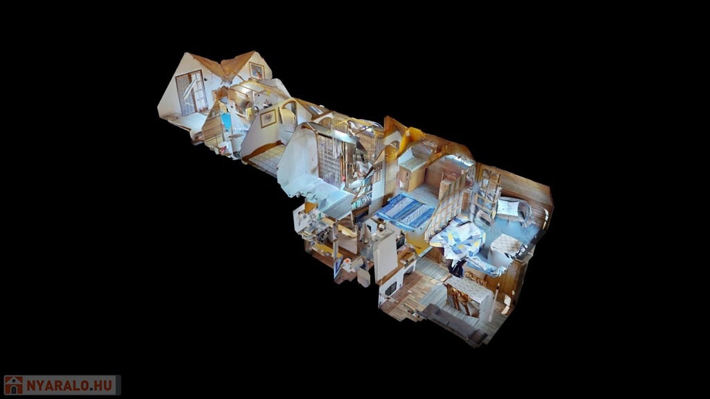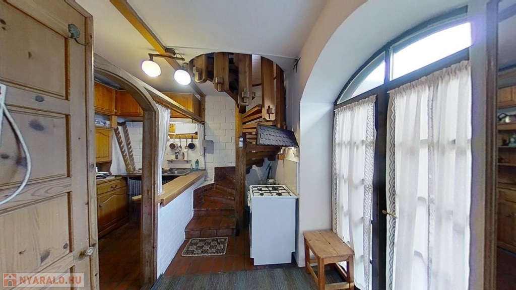 A két szintet egy belső csigalépcső köti össze, további egy apartman a ház oldalában az udvarról megközelíthető. Mellékelt virtuális túra bemutatónk ezt az apartman-részt nem tartalmazza.
