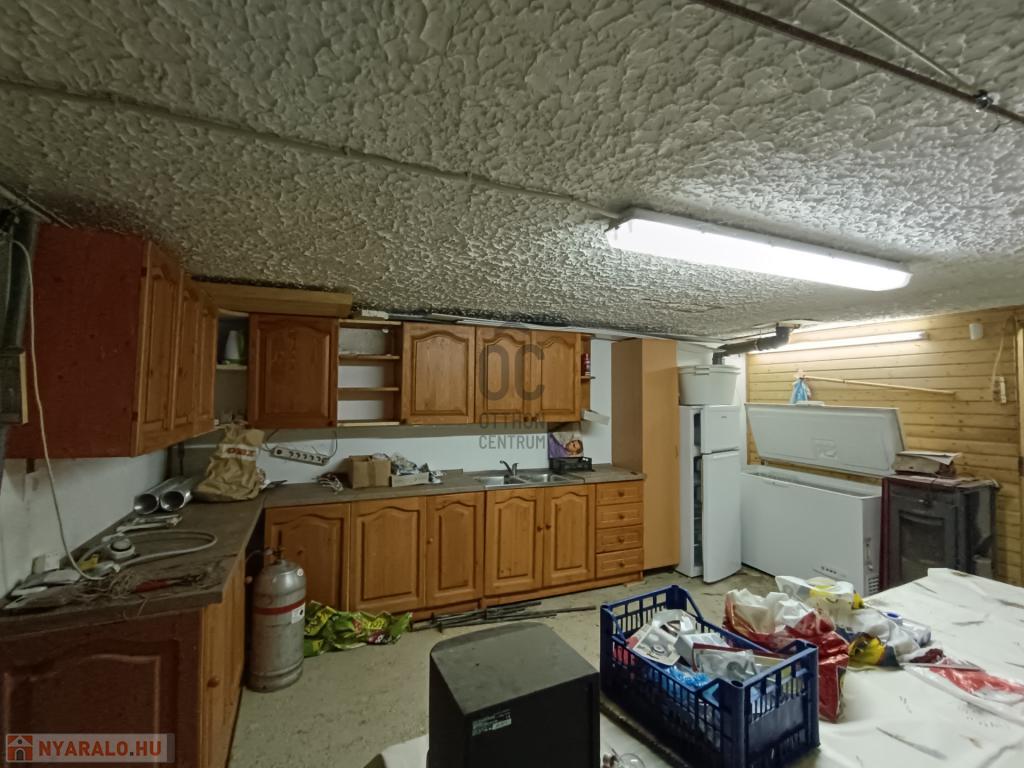 - pinceszinten 60 m2 alapterülettel konyha-étkező, fürdőszoba- zuhanyzóval, tároló, garázs /20 m2/ kapott helyet