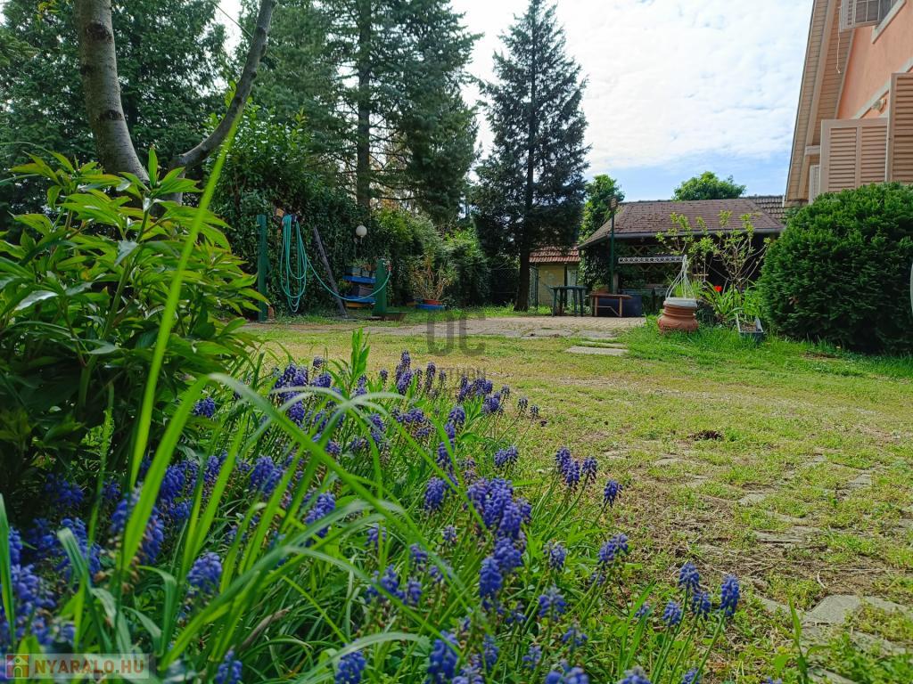 Az udvaron pergola és fedett épített kemence kapott helyet a sütögetéshez, bográcsozáshoz. Családi, baráti összejövetelek tökéletes helyszíne a zöld parkosított udvar, évelős cserjékkel, rengeteg nyíló virággal.
