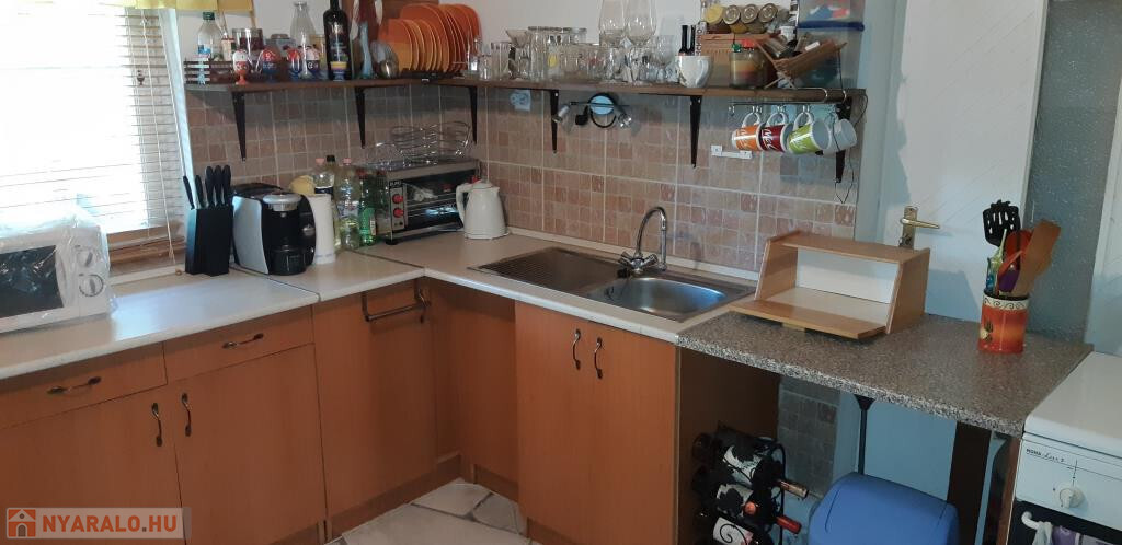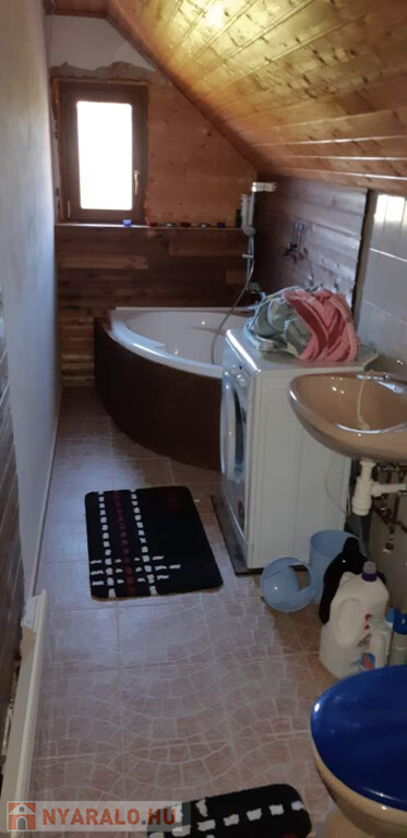 A hatékony, és a külföldiek által is nagyon kedvelt igali gyógyfürdő közelében, attól 10 perc sétára kínáljuk megvételre ezt a remek adottságú házat. Jelenlegi elosztása szerint ikerház, de természetesen egybe nyitható. A telek elejének enyhe emelkedését kihasználva kialakítottak két garázst utcafronti kapukkal, ez a legalsó szint. Fölötte, kívül megközelíthető két oldalról a két lakórész, mindkettőbe hátul, a terasz felől vezet a bejárat. A két lakrész nagyjából egyforma. A földszinten találjuk az étkezős konyhát, a nappalit, valamint fürdőt és tárolót. A tetőtérbe a nappaliból vezet kényelmes falépcső, fent kis közlekedőből nyílik két hálószoba, és még egy fürdő. Összesen 128 m2-en van négy szoba, két félszoba, két konyha, négy fürdő, két tároló, plusz két elkülönülő, fedett terasz. Az egyik lakásban épített kandalló és elektromos fűtő panelek teszik lehetővé hűvösebb időben is a kikapcsolódást, vagy akár az állandó, életvitelszerű tartózkodást. A telek 672 m2-es, hátul egyenes, füves, fákkal tarkított. Mind az épület, mind a kert karbantartott, barátságos, hangulatos.