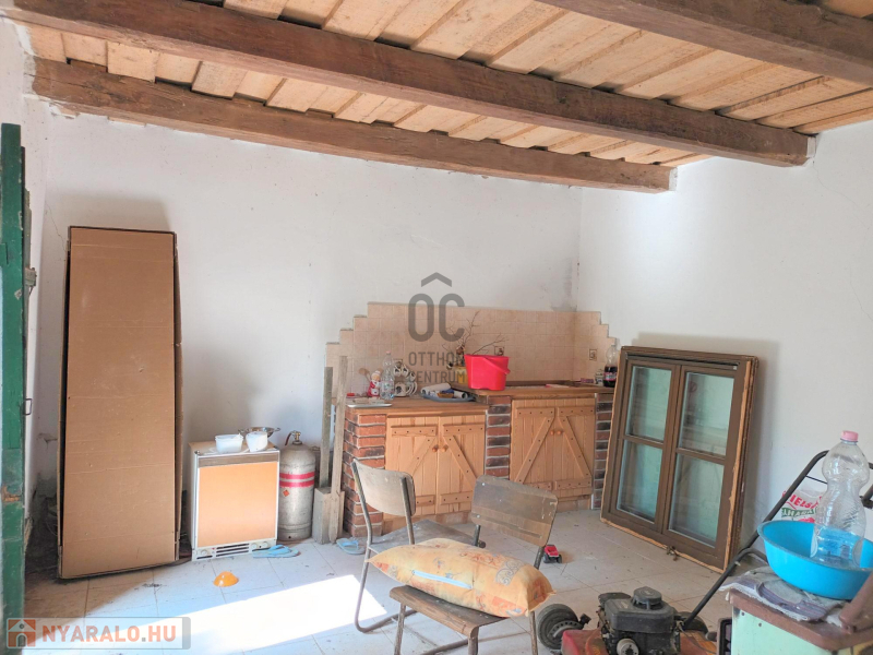Az épületben nagyon hangulatos, látszógerendás mennyezettel egy 16,23 nm-es szobát találunk és egy 11,23 nm-es borospincét. A villany be van vezetve a házba, de azon belül a hálózat nincs még kiépítve.