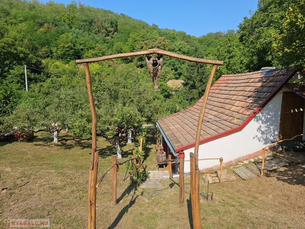 Kaposkeresztúr és Baté között a hegyen kínáljuk megvételre ezt a zártkerti házat csodálatos természeti környezetben. Kétszintes, nem nagy, de minden megvan benne, ami szükséges, akár állandó lakhatásra is alkalmas. Lent a fedett terasz köti össze a kertet a belső térrel, innen mehetünk be a házba. A konyhába lépünk, ahonnan jobbra a pincébe juthatunk, balra az egyik szobába. Itt, a szoba sarkába állították be a zuhanykabint és egy mosdót. A másik szoba a padlástér beépítésével fent lett kialakítva, külső bejárattal. Van két tároló rész is, egyik fent a szoba előtti előtérben, a másik lent, a teraszról nyílik. A házat ízlésesen és minőségi módon felújították, kicserélték az elektromos hálózatot és a nyílászárókat, az új bejárati ajtó tölgyfából készült. A konyha és a „fürdő” minden igényt kielégít. Víz fúrt kútból áll rendelkezésre, onnan van bevezetve az épületbe, illetve a kerti zuhanyzóba. A jelenlegi tulajdonosok környezetbarát komposzt WC-t használnak. Fűteni többféle módon lehet, a fenti szobában villanyradiátorral, lent pedig van egy kályha, valamint hűtő-fűtő klíma berendezés. A lakóterület 32 m2, ehhez jönnek még a tárolók, a terasz és a pince. A telek 3900 m2-es, alsó része nagyjából sík, feljebb teraszos. A ház közelében létrehoztak még egy fedett teret egy kis kemencével, bográcsozó hellyel. Mind a ház, mind a környezete szépen gondozott, ápolt, nagyon jó hangulatú. Alkalmas szálláshelynek, hétvégi háznak, de akár ki is lehet költözni a világ zaja elöl. Autóval jól megközelíthető, de buszmegálló is 5-10 perc sétára van. Minden bútor és felszerelés marad, az ár tartalmazza ezeket!