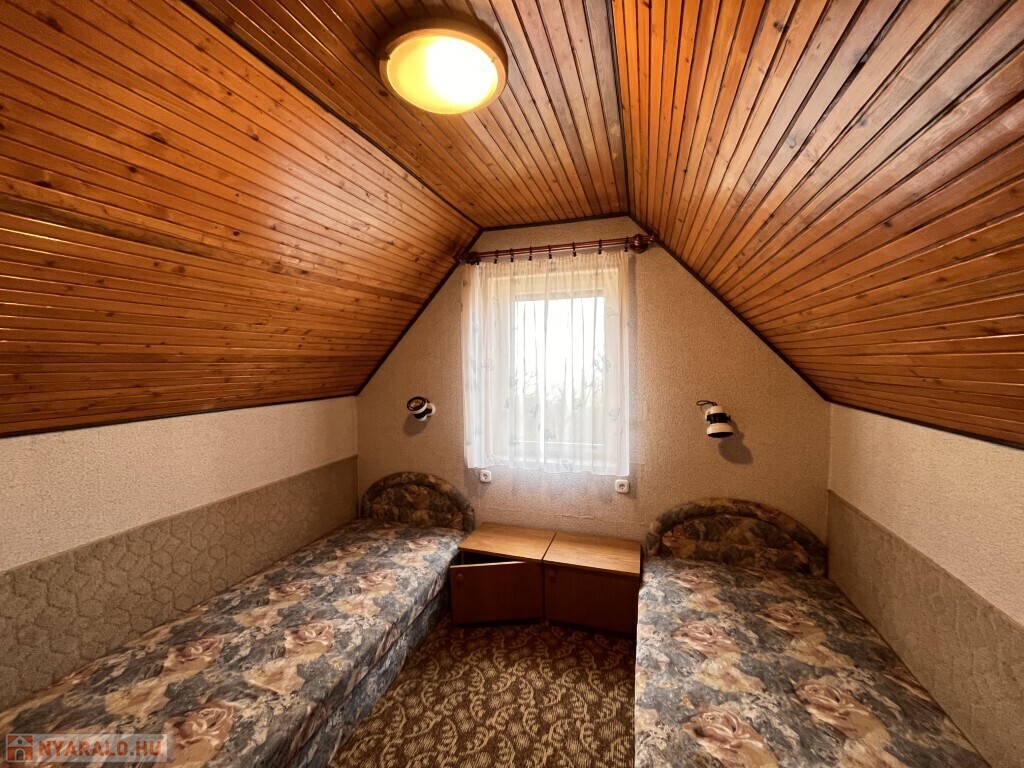 Kaposváron a Deseda-tó közelében - a toponári oldalon - jó állapotú, akár gyorsan birtokba vehető, hangulatos hétvégi ház berendezéssel együtt, gondozott udvarral eladó. Az épület alsó szintjén tágas nappali, konyha, étkező, fürdőszoba, wc helyiségek találhatóak, illetve egy nagyobb méretű fedett terasz is van. A tetőtérben egy nagyobb szoba és két félszoba, valamint egy WC - kézmosó is kialakításra került. Az ingatlan vízellátása vezetékes vízzel megoldott, a meleg vizet villanybojler biztosítja, továbbá derítő is van. Az ingatlan fűtését az alsó szinten egy cserépkályha, a felső szinten villanyradiátor biztosítja. Az ingatlanhoz tartozik egy pince, és egy tároló helyiség is, amely alkalmas lehet a kerti eszközök tárolására. Telek: 967 m2