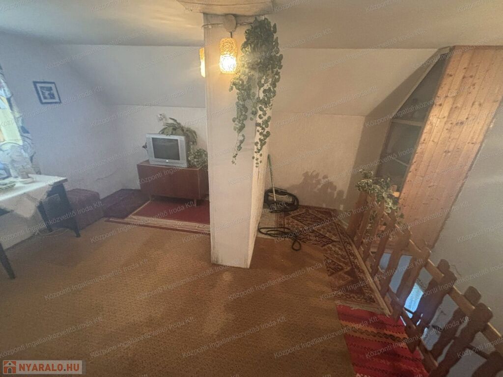 A Központi Ingatlanközvetítő Iroda kínálja eladásra, Környén, a Hobbikert községrész csendes, zöldövezeti részén, a 4-es dűlőben ezt az igazán különleges hétvégi házat, amely tökéletes választás lehet pihenésre, kertészkedésre, vagy akár kisebb átalakítás után életvitelszerű ottlakásra is. A 750 m²-es, gondosan karbantartott telek és az azon álló kétszintes épület igazi ritkaságnak számít ebben a térségben. A 35 m² alapterületű ház alsó szintjén egy praktikus konyha, étkező és tárolóhelyiség kapott helyet, míg az emeletre egy masszív belső lépcső vezet, ahol egy tágas szoba és egy kényelmes gardrób található. A ház szerkezetileg jó állapotban van, így egy kisebb frissítéssel akár állandó lakhatásra is alkalmassá tehető. A telken található gyűrűs kút a locsoláshoz és kerti munkákhoz is hasznos segítséget nyújt. A kert igazi ékköve a bőtermő, gondosan gondozott csemegeszőlő-lugas, amit különféle gyümölcsfák – például alma, körte és szilva – egészítenek ki. Emellett számos színes, virágzó évelő növény és bokor díszíti a területet, amely nemcsak a kertészkedést kedvelőknek, hanem a nyugodt pihenésre vágyóknak is ideális. A ház alatt található, megközelítőleg 20–30 négyzetméteres borospince különlegessé és értékessé teszi az ingatlant. Kiváló állapotának köszönhetően ideális bor tárolására, hűvös kamrának, de akár egy hangulatos pincehelyiség kialakítására is. Ez az ingatlan nemcsak nyugalmat, hanem lehetőséget is kínál: önellátó életmód kialakítására, családi kikapcsolódásra vagy akár hosszú távú befektetésre is tökéletes választás lehet.