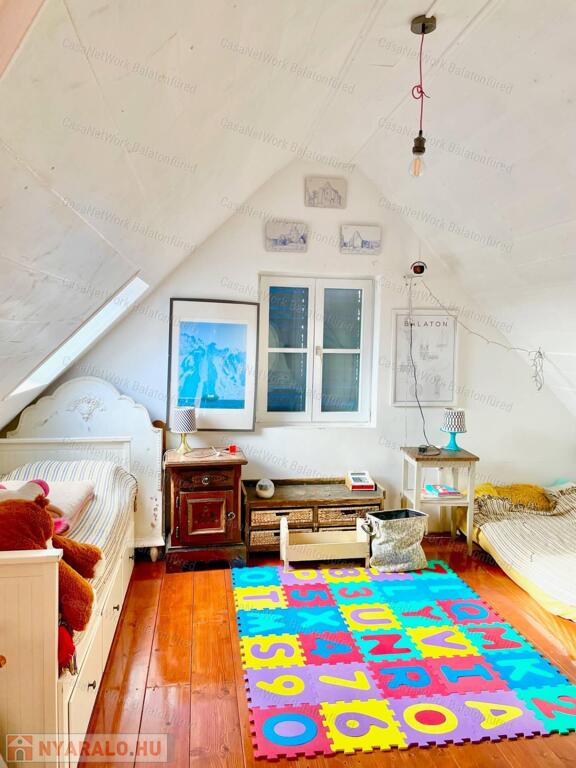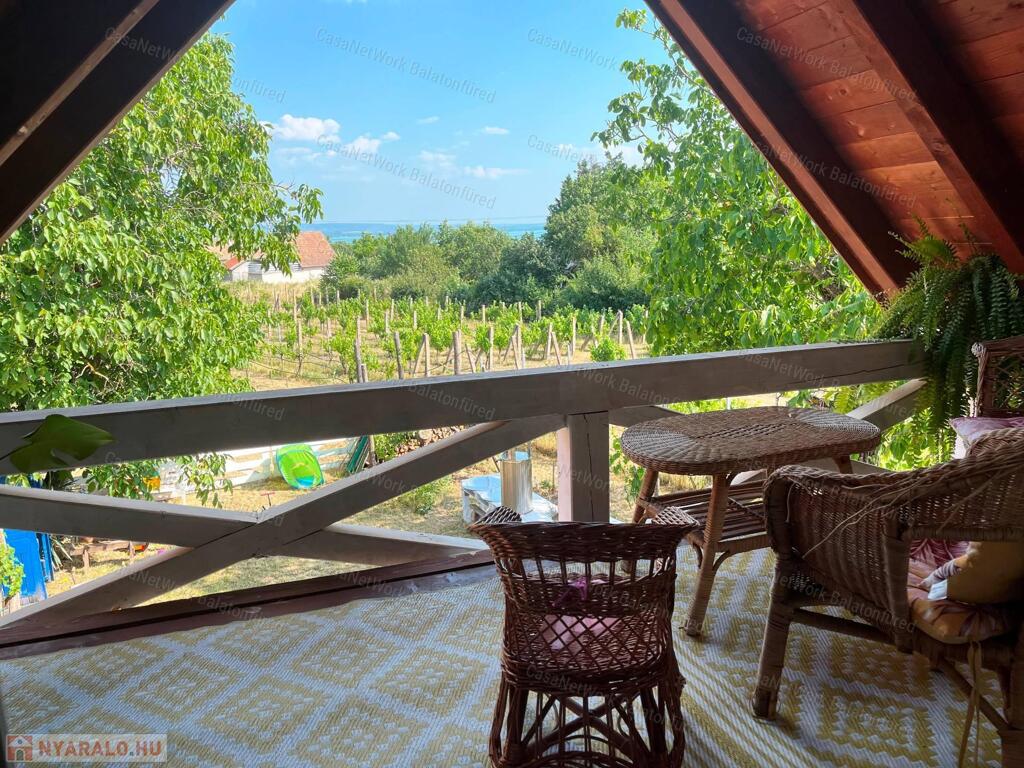 - Felső rész: két szoba, részben balatoni panorámás terasz ahol esténként jól esik egy kis borozgatás mellett csodálni a természet adta szépséget