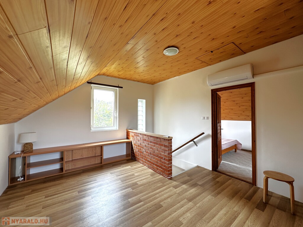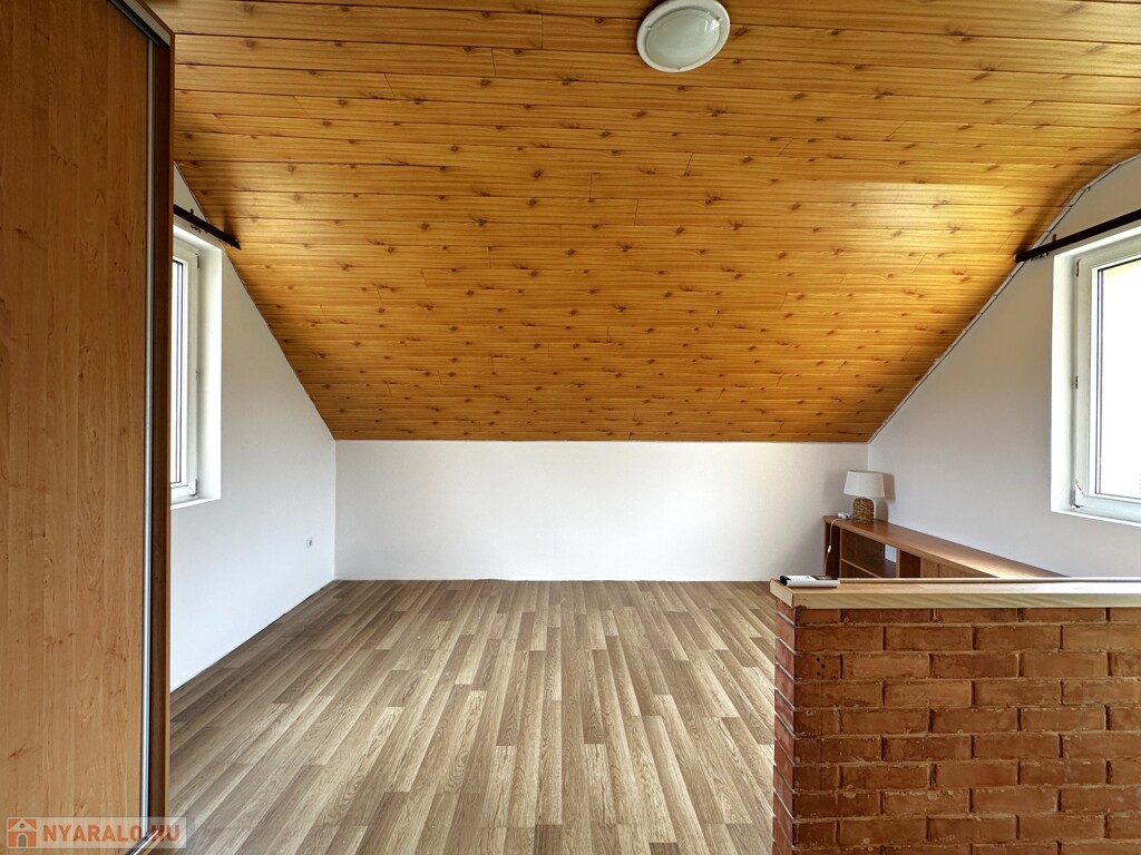 A telek 705 m2, a 2000-ben épült téglaház tetőtér beépítéses, 70 m2 hasznos alapterületű.