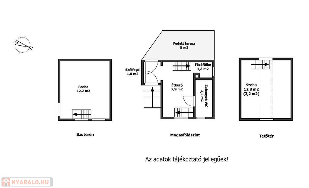 Az épületben 2 szoba található, egy a szuterén szinten és egy a tetőtérben, 4 fő kényelmes pihenésére ideális. Az épülethez nagy fedett terasz kapcsolódik.