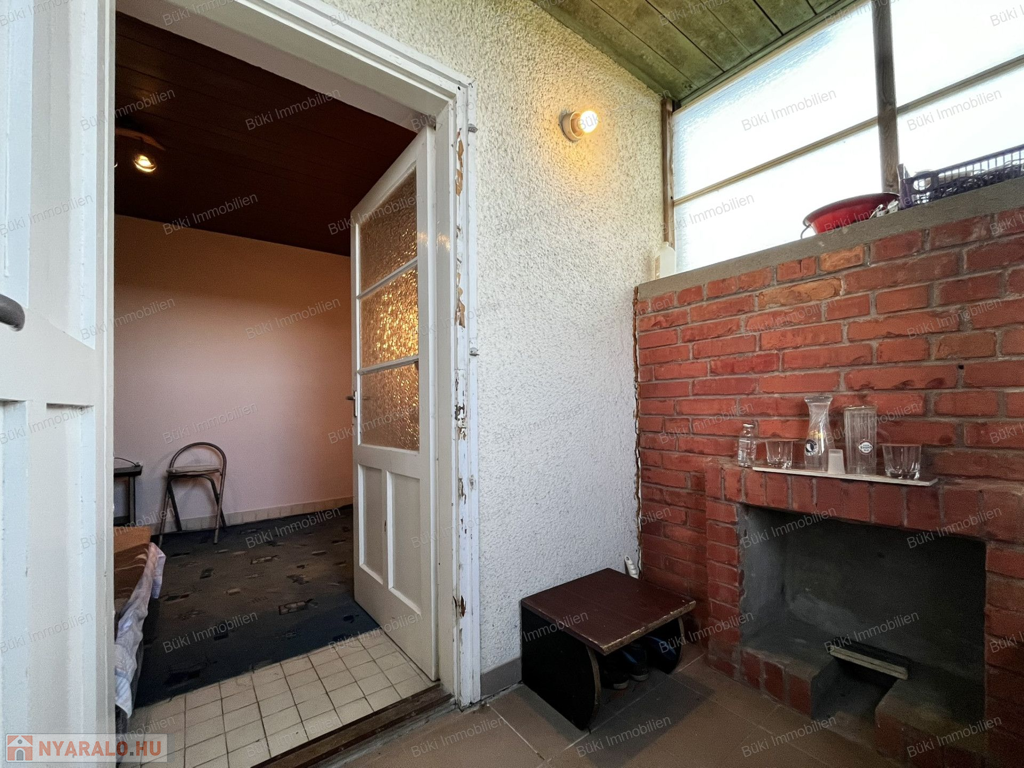 Eladó Pingyom festői környezetében egy bájos, tégla építésű hétvégi ház, amely ideális választás mindazok számára, akik nyugalomra, természetközeli pihenésre vágynak, mégis fontos számukra a jó megközelíthetőség. Az 1872 m²-es, gondozott telek gazdag gyümölcsöskerttel büszkélkedik – füge, ribizli, cseresznye, körte, alma, barack, mogyoró, szilva és hatalmas fenyőfák teszik igazán különlegessé ezt a helyet, ahol a madárcsicsergés mindennapos vendég.