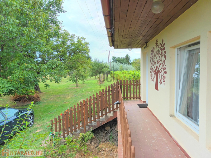A házban a felső szinten egy 15,20 nm-es nappali-konyha, 5,60 nm-es szoba, 3,28 nm-es fürdőszoba-Wc, 3,78 nm-es közlekedő helyiségek találhatóak, és egy 8,08 nm-es fedett terasz. Lent egy nagyon hangulatos, 13,38 nm-es borospince (földpince), és egy 28,54 nm-es tároló. Különálló kerti illemhely is van, illetve egy tűzrakóhely.