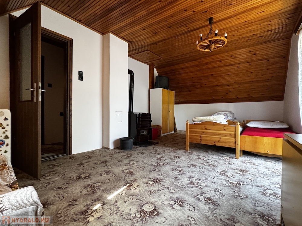 Galyatetőn 860 méter magasan a kristálytiszta hegyi levegő és az elviselhető hőmérsékletű nyarak hazájában eladóvá vált egy karbantartott, tágas terekkel rendelkező 2 utcára nyíló nyaralóingatlan. A környék túlárazott ingatlanjaihoz képest abszolút reális áron juthat hozzá ehhez a 3 szintes 2 teraszos, éjszakai árammal is rendelkező, 4-5 gépjármű kényelmes parkolását biztosító ingatlanhoz. A legalsó szinten 49 m2 tároló - garázs, a 46 m2-es földszinten 26 m2 nappali, konyha, kamra, előszoba és fürdőszoba, míg a 41 m2-es tetőtéri szinten egy 17 és egy 21 m2-es szoba, valamint közlekedő található. A tetőtéri szinten 6, míg a nappaliból nyíló terasz 9 m2 nagyságú. Az ablakokon zsalugáterek, a házban riasztórendszer, a nappaliban és a nagyobb emeleti hálószobában fatüzelésű kályhák is találhatóak a hőtárolós elektromos fűtőtestek mellett. A betoncserép tetőzet, a masszív falazat, a kertben kialakított támfalak, az ingatlan előtti parkolók még értékesebbé teszik az ingatlant, és jónéhány beruházástól szabadítják meg az új tulajdonosát.