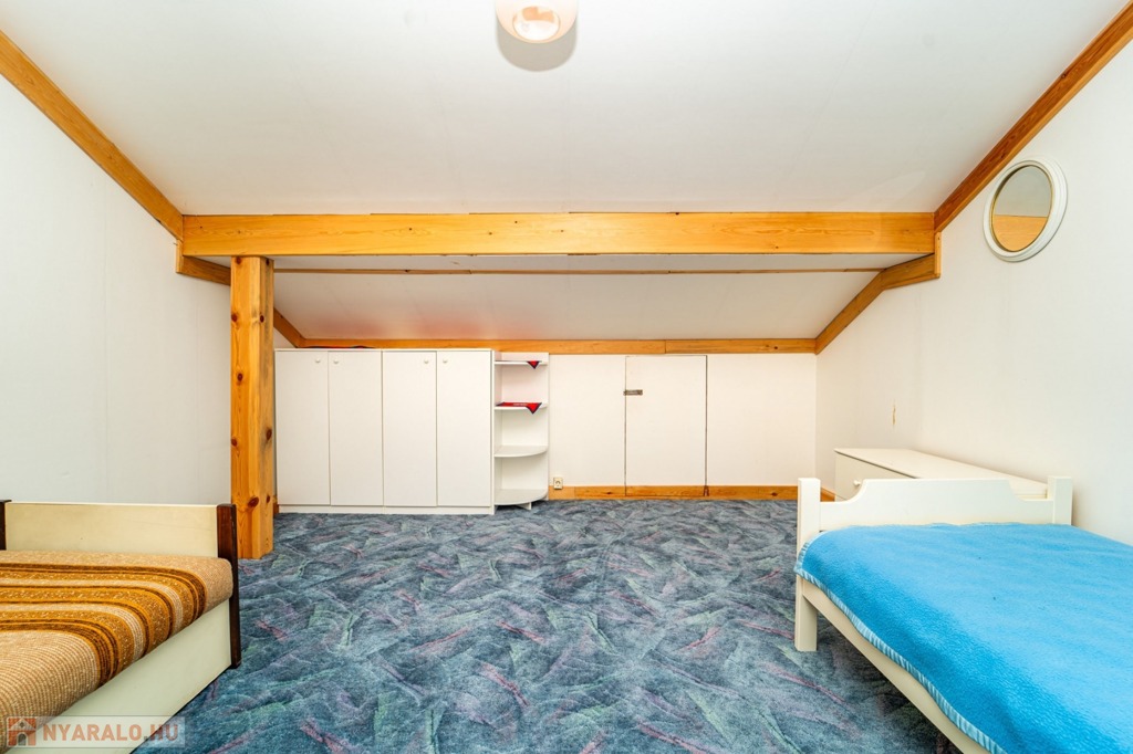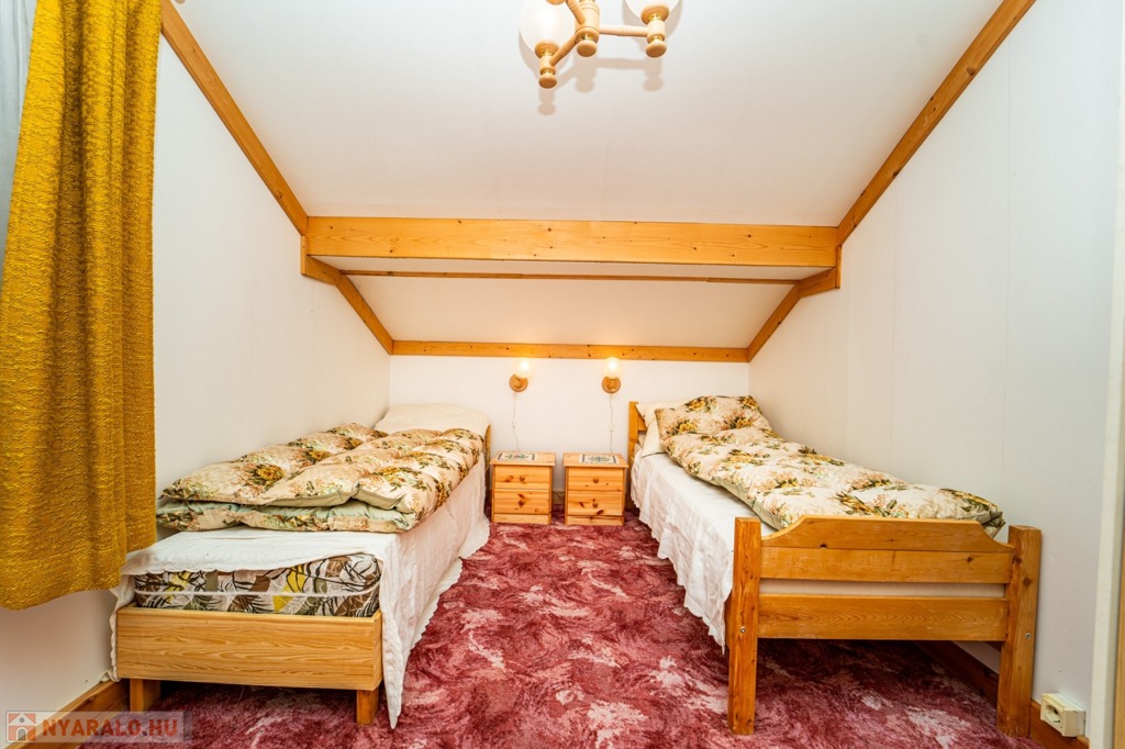 Mátraszentimrén, az ország legmagasabban fekvő lakott településén kínálok eladásra egy szinte teljesen sík, 1451 m2-es telken lévő (tulajdoni lapon kivett hétvégi ház, udvar megjelölésű), nappali + 3 hálós, 80-as években épült téliesített, eredetileg szlovák szendvics faházat az Arany János utcában. A lakható alapterület 107 m2, emellett egy 30 m2-es garázs és egy 20 m2-es, fedett terasz is tartozik hozzá, a telekre külön is be lehet autókkal állni.