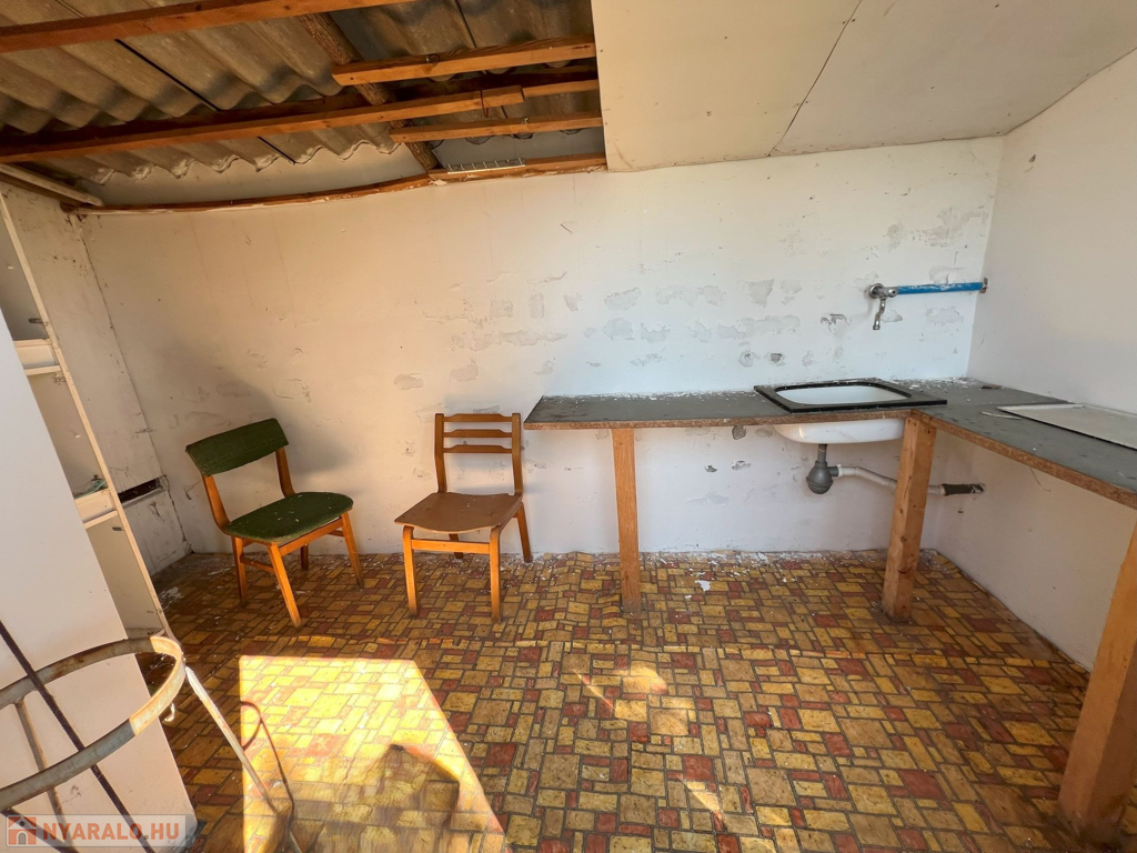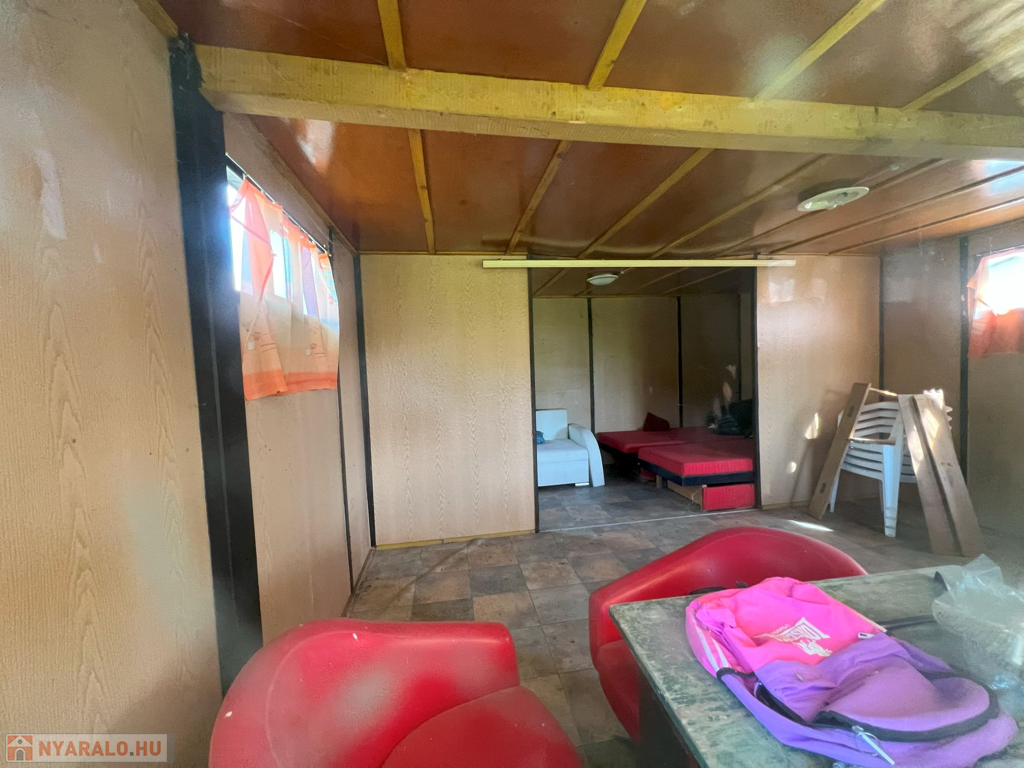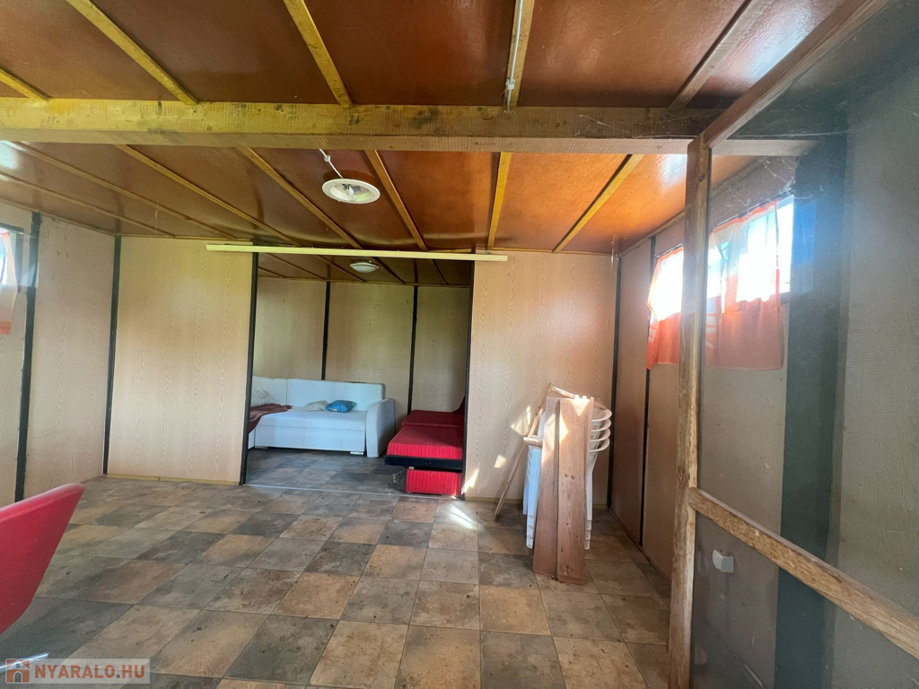 A nyaraló jellemzői: Ez a hétvégi ház 25 m²-es alapterületű, két szobából áll, továbbá külön bejáratú konyhával és mellékhelyiséggel rendelkezik. Az épülethez pince is tartozik, amely kiválóan alkalmas tárolásra, vagy akár egy további helyiség kialakítására is.