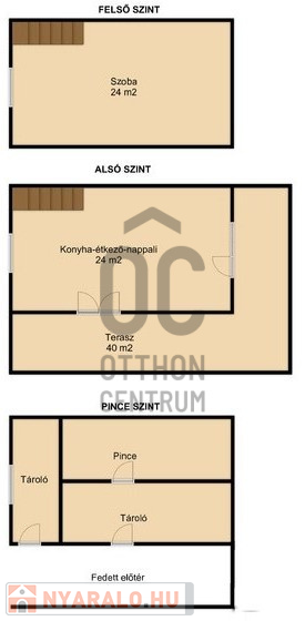 Az alsó szint 27 m2, ahol 2 tároló és egy pince található.