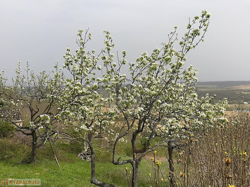A telek mérete 1837 m2, többfajta jól termő gyümölcsfa található a területen.