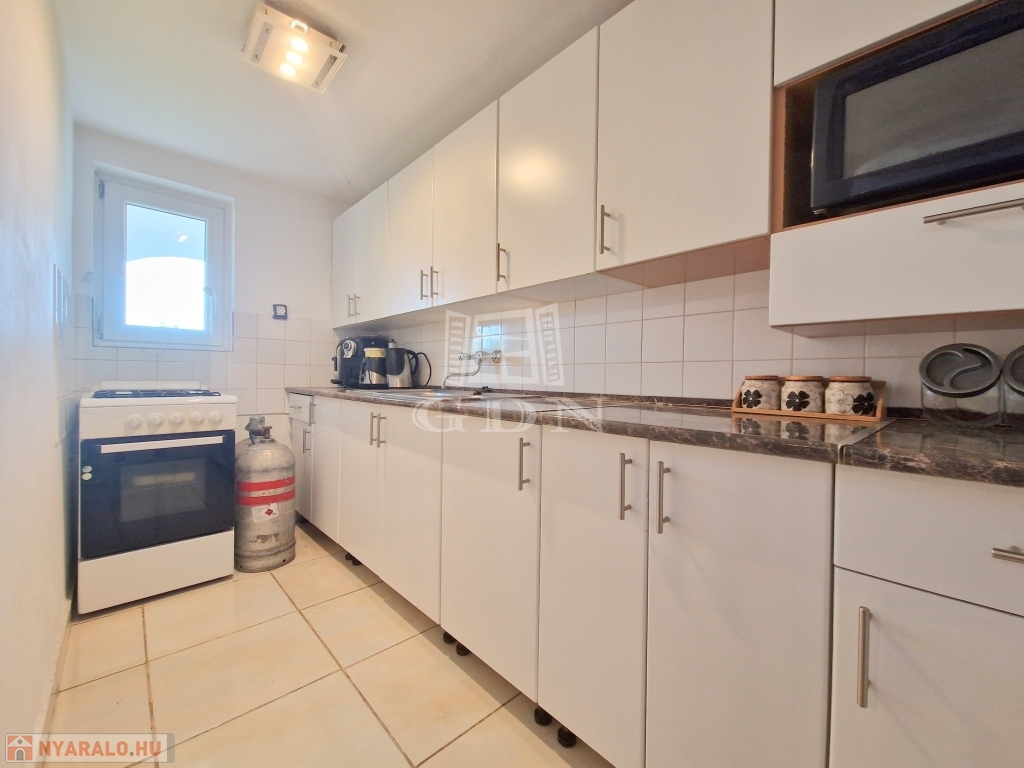 Nagykapornak Laki - hegyi részén vált eladóvá ez az 50 m2-es (+ 18 m2 terasz), jól kialakított, életvitelszerű lakhatásra alkalmas,