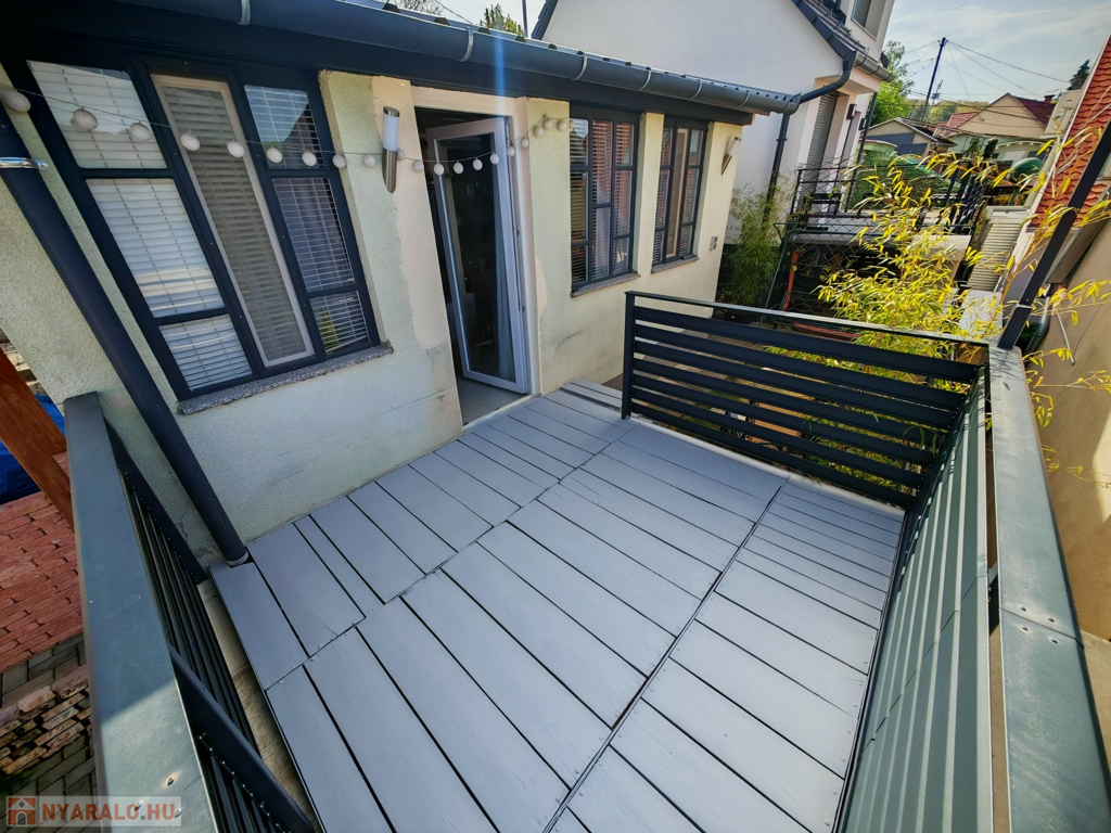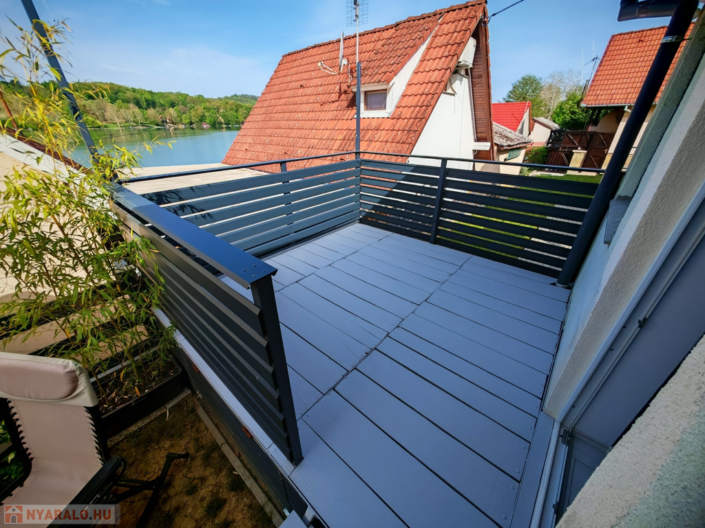 A 80 m²-es telek igényesen és praktikusan lett kialakítva. A tóra néző, tágas terasz nyugodt pihenést kínál, ezen kívül fedett terasz, tároló, hintaágy és kemence is található rajta – utóbbiak igény szerint megvásárolhatók.