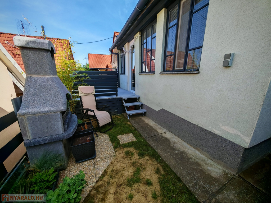 A házban szoba, konyha, fürdő-WC, valamint egy kis étkezőként és szobaként használható helyiség kapott helyet. A fűtés-hűtést új klímaberendezés biztosítja, a melegvízről bojler gondoskodik. A tetőt tavaly cserélték és szigetelték. Gázcsonk az udvaron belül.