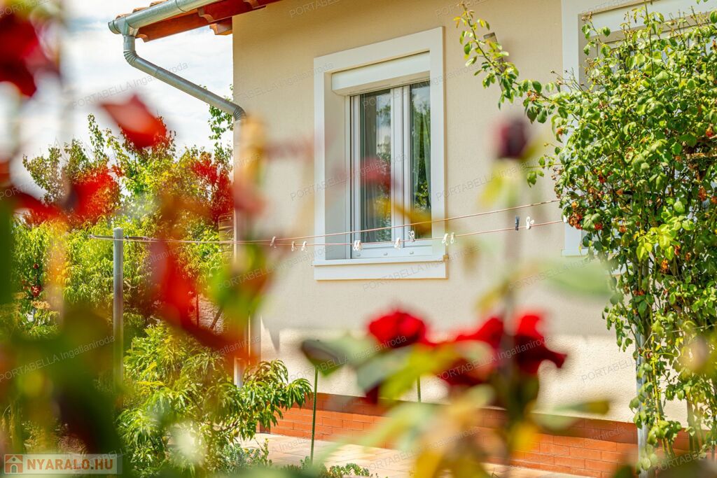 Ahogy végighaladsz az utcán, már messziről feltűnik az ingatlan rendezett, oldalt magas kerítése mögött megbúvó gyönyörű kert. A zöld növények látványa szinte megállítja az embert – egyszerre rendezett, élettel teli és magával ragadó. A bejáratnál rögtön érezni, hogy itt minden apró részlet gondos odafigyeléssel lett kialakítva – ez az a fajta otthon, ahol már kívülről is látszik, hogy belül is rend van.