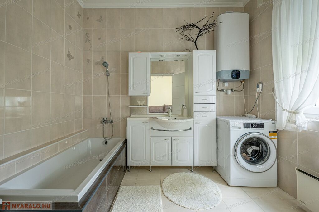 Fürdőszoba: fürdőkáddal, mosógéppel, Ariston elektromos bojlerel