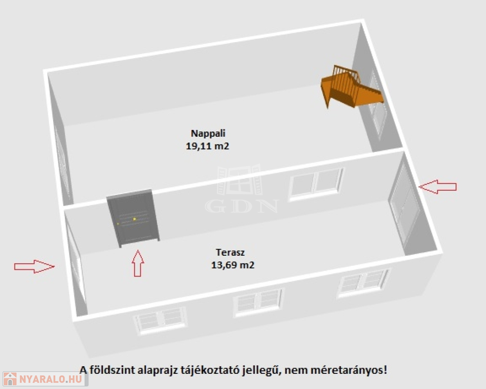A nettó méretbe a terasz 50%-a bele van számolva.