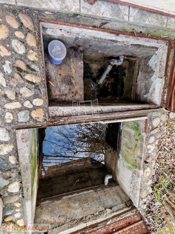 A ház első kertjében egy kétaknás, halpucoló van építve, amiben folyamatosan folyik a tiszta víz.