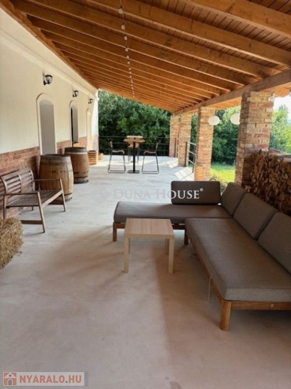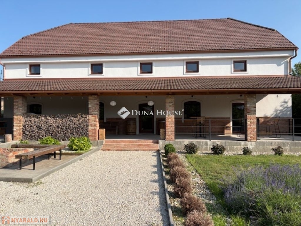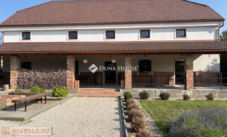Eladásra kínálunk közművel ellátott ingatlant, amely három helyrajzi számon található. Az ingatlan 310 nm-es, két szintes épületébe lépve két szoba, egy fürdőszoba, egy különálló wc kézmosóval, egy teljesen felszerelt beépített konyha, valamint két tágas nappali-rendezvénytér teret találunk, mely tökéletes helyszínt biztosít családi és üzleti összejövetelekhez egyaránt.Ez az ingatlan nem csupán egy otthon, hanem egy komplex vállalkozási lehetőséget is kínál annak, aki szeretne egy sajátos karakterű helyen élni és dolgozni. Az épület és a terület teljes körű felújításon esett át, így garantálva a modern kor elvárásainak megfelelő kényelmet és funkciót. Vegye át az irányítást ezen varázslatos hely felett, ahol az élet és az üzlet találkozik.Ezen felül az ingatlanon egy saját kút található, valamint egy lenyűgöző kiépített tégla boltíves pincerendszer, amely két szinten összesen 850 nm hasznos alapterülettel rendelkezik, és egy akna segítségével köti össze a szinteket. Ez a tágas, sokoldalúan hasznosítható hely kiválóan alkalmas borászati tevékenység, sajtkészítés vagy akár egyedi rendezvényhelyszínként való funkcionálásra is.A főépület előtt egy 80 nm-es fedett terasz húzódik, mely egy nagyméretű kemencével felszerelt, így ideális hely a szabadtéri összejövetelek és baráti grillpartik számára. A területen kb. 1 100 tő, 4 éves levendula nyújt látványos színt és illatot, amely nem csak szemet gyönyörködtető, de akár vállalkozási lehetőséget is rejt magában.Az épület modern komfortját vezetékes vízellátás, biológiai szennyvíztisztító berendezés, 3 fázisú elektromos áramellátás és 6,5 kW teljesítményű napelemes rendszer biztosítja. Az elektromos padlófűtés és a hűtő/fűtő klíma rendszerek egész évben kellemes hőmérsékletet garantálnak, míg az elektromos kapu és a körbekerített terület a biztonság érzetét növeli.