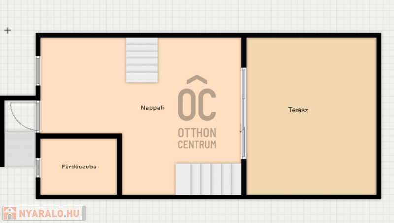 Lakótér: Világos nappali, fürdőszoba, emeleten 2 hálószoba.