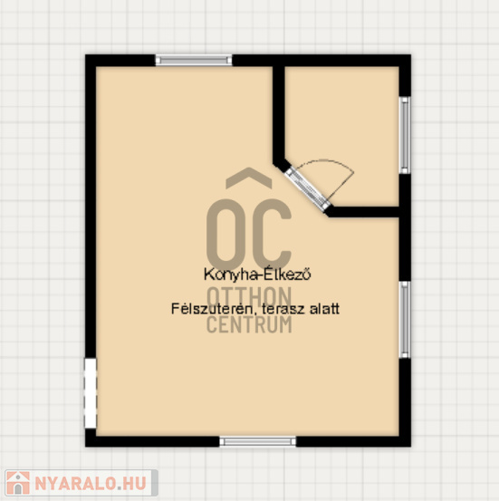 Félszuterén szint: A terasz alatt kialakított tágas konyha-étkező és egy praktikus kamra található.