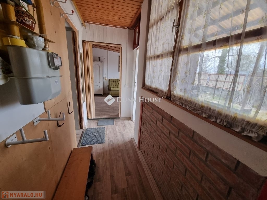 Az 50 m2-es tégla építésű nyaraló, 450 m2-es összközműves telken található.