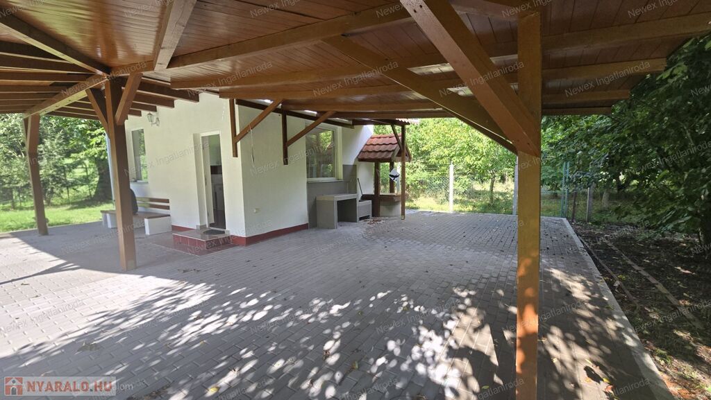 A 2003-ban épült, 50 m²-es téglaépítésű épület rendkívül megkímélt, kényelmes elrendezésű, és villanyfűtésének köszönhetően az év bármely időszakában használható. A nyugati tájolásnak köszönhetően a terület lenyűgöző panorámát és gyönyörű naplementéket kínál. A gondozott, 1 281 m²-es belterületi telek ideális pihenésre, kertészkedésre, valamint udvari parkolást is biztosít. A zárt sorompós bekötőút biztonságos, nyugodt környezetet teremt.