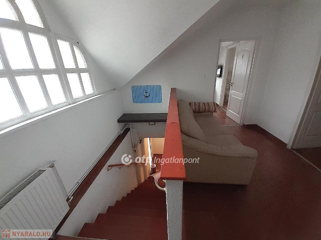 Balaton déli parton, Siófokon, 8 egységes apartmanház eladó. Az ingatlan Siófok legfrekventáltabb részén a Balaton-parttól, a Nagystrandtól néhány lépésre helyezkedik el. A zárt udvarban a parolás több autó számára megoldott. A földszint + tetőtér kialakítású panzió 2020-ban teljes felújításon esett át, a homlokzati hőszigetelés mellett új műanyag hőszigetelő üvegezésű nyílászárók kerültek beépítésre. Az üzemeltetés 365 napon át biztosított, a fűtésről elektromos kazán gondoskodik. A szobaegységek saját vizesblokkal rendelkeznek és klimatizáltak, a földszinten 4 egységhez galéria tartozik. A szobákhoz a földszinten egy közös használatú konyha áll rendelkezésre. A működéshez egy külön bejáratú iroda létesült a földszinten vizesblokkal. Az épület egyéb funkcióra is alkalmas lehet, akár vendéglátó egység is kialakítható. Az ingatlan teljes berendezéssel eladó, a vételár tartalmazza. Bővebb információért keressen telefonon!