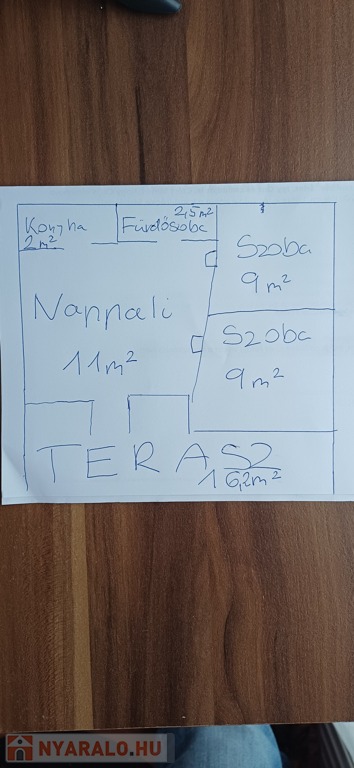 Jó elosztású,világos ház.A teraszról belépve a nappaliba érkezünk,szemben a konyha és a fürdő kapott helyet,melyben mosdó,wc és zuhanykabin található.A két különálló szoba szinten a nappaliból nyílik.A tágas terasz igény szerint beépíthető