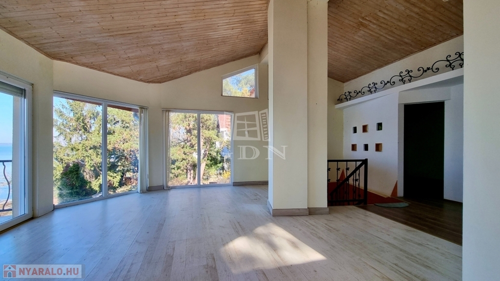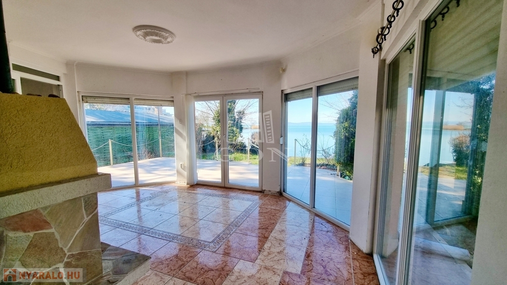 A 787 m²-es telken elhelyezkedő, 13 méterre a parttól lévő ház 18 méter nádmentes saját partszakasszal rendelkezik — ilyen elhelyezkedés ma már ritkaság, hiszen új építések 30 méteren belül nem engedélyezettek!
