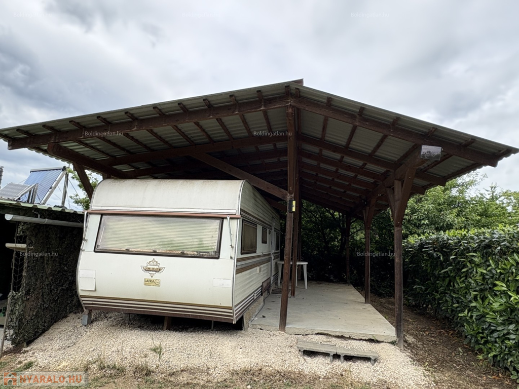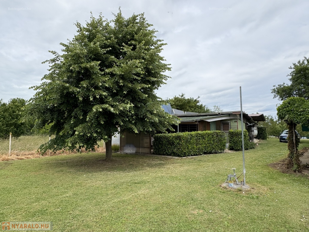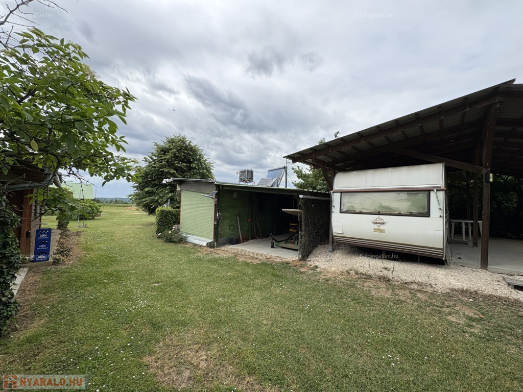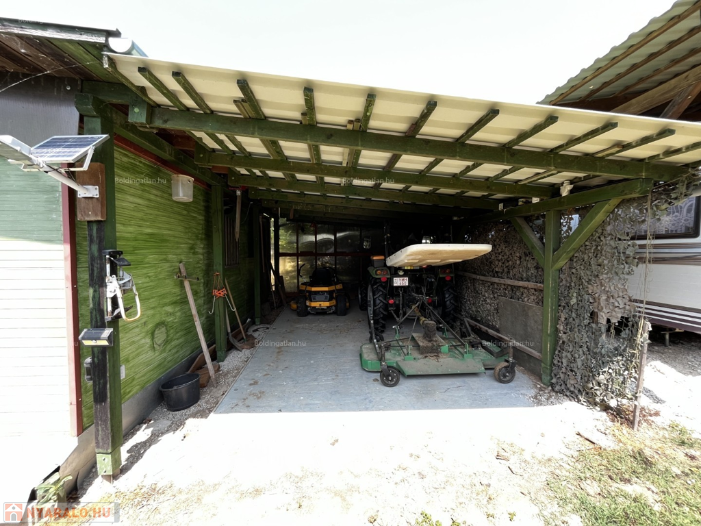 Somogyszentpálon csendes környezetben hétvégi ház, 300 m hosszú és 50 m széles sárkányrepülésre, és UL repülőgépek fel és leszállására alkalmas - jelenleg működési engedéllyel nem rendelkező - reptérnek használt területtel, gyümölcsöskerttel eladó. Két épület található a területen, összesen három szobával, amely hat fő elszállásolására nyújt lehetőséget, valamint egy 8 m hosszú lakókocsi további négy személy számára nyújt szállás lehetőséget. A telken található egy fedett kocsibeálló, és a kerti gépek számára tároló. Az épületek áramellátása sziget üzemű napelemmel megoldott, a meleg vizet vákumcsöves szolár kollektív rendszer biztosítja, a fűtést parapetes gázkonvektorok szolgáltatják, illetve a vizet hidrofor juttatja a kútból az épületbe. Tartozik hozzá egy 80 m2-es hangár és egy 12 m hosszú konténer is, amely akár kisebb raktárként is funkcionálhat, valamint a telek végében egy 9 m-es magasles áll. A terület teljesen körbe van kerítve, kamera és riasztórendszerrel van ellátva. Telek: 18.345 m2. Amennyiben az ingatlan felkeltette az érdeklődését, kérem hivatkozzon a 709. számú ajánlatra! Irodánk címe: Kaposvár Irányi D. u. 9.