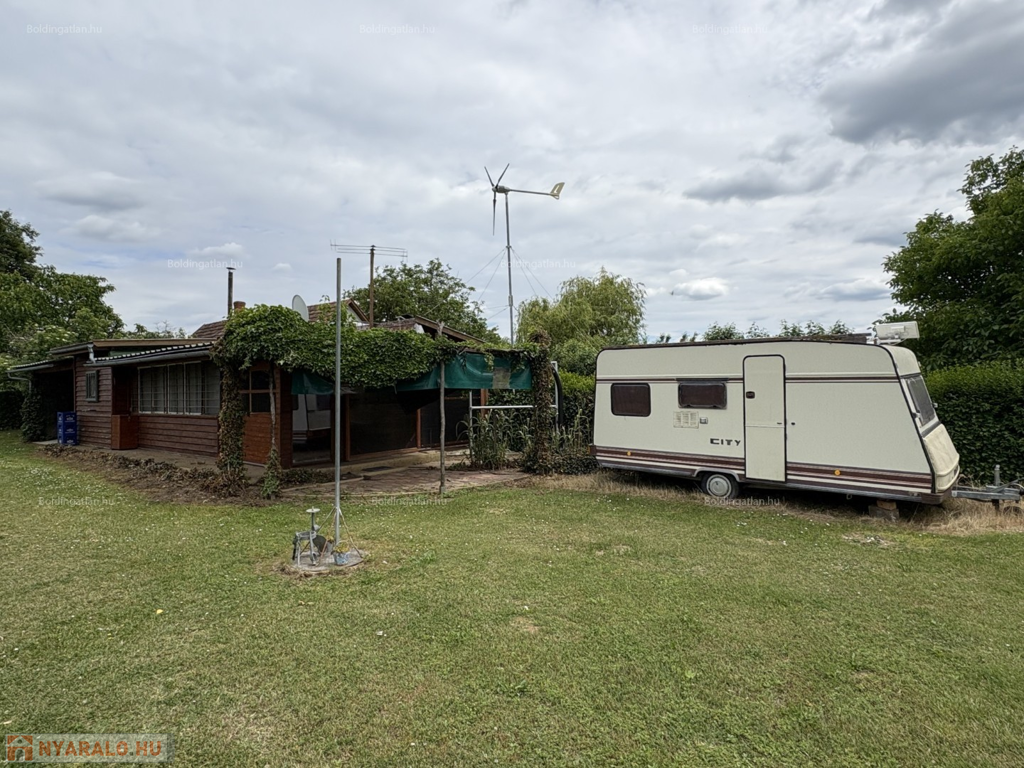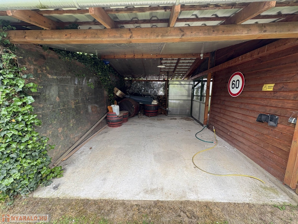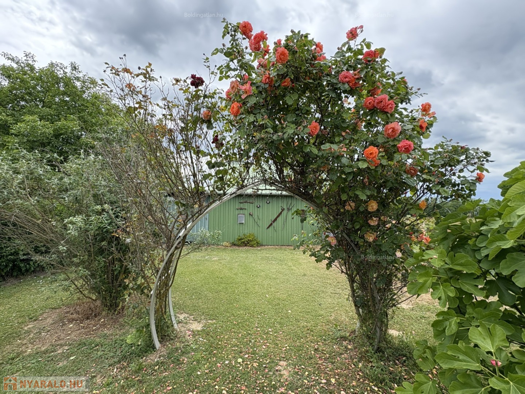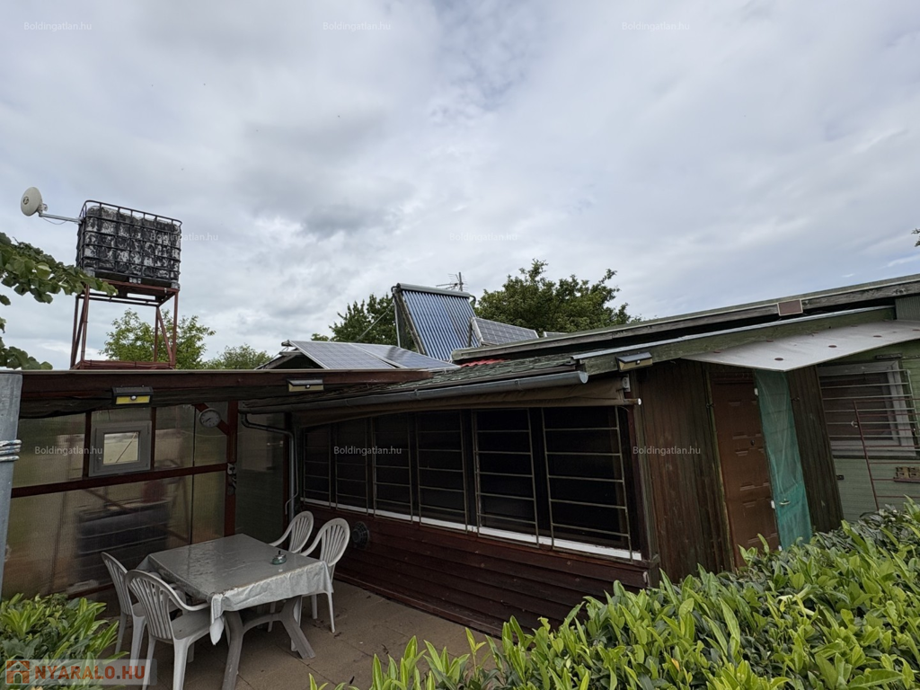 Somogyszentpálon csendes környezetben hétvégi ház, 300 m hosszú és 50 m széles sárkányrepülésre, és UL repülőgépek fel és leszállására alkalmas - jelenleg működési engedéllyel nem rendelkező - reptérnek használt területtel, gyümölcsöskerttel eladó. Két épület található a területen, összesen három szobával, amely hat fő elszállásolására nyújt lehetőséget, valamint egy 8 m hosszú lakókocsi további négy személy számára nyújt szállás lehetőséget. A telken található egy fedett kocsibeálló, és a kerti gépek számára tároló. Az épületek áramellátása sziget üzemű napelemmel megoldott, a meleg vizet vákumcsöves szolár kollektív rendszer biztosítja, a fűtést parapetes gázkonvektorok szolgáltatják, illetve a vizet hidrofor juttatja a kútból az épületbe. Tartozik hozzá egy 80 m2-es hangár és egy 12 m hosszú konténer is, amely akár kisebb raktárként is funkcionálhat, valamint a telek végében egy 9 m-es magasles áll. A terület teljesen körbe van kerítve, kamera és riasztórendszerrel van ellátva. Telek: 18.345 m2. Amennyiben az ingatlan felkeltette az érdeklődését, kérem hivatkozzon a 709. számú ajánlatra! Irodánk címe: Kaposvár Irányi D. u. 9.