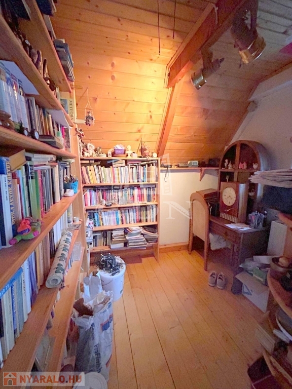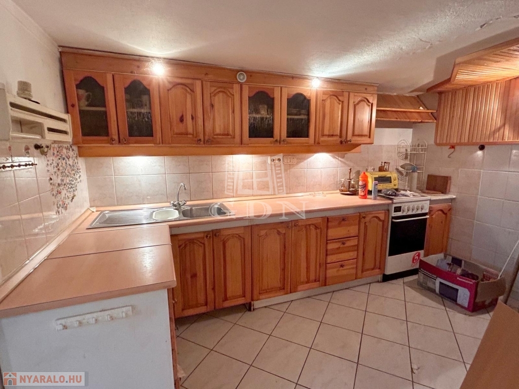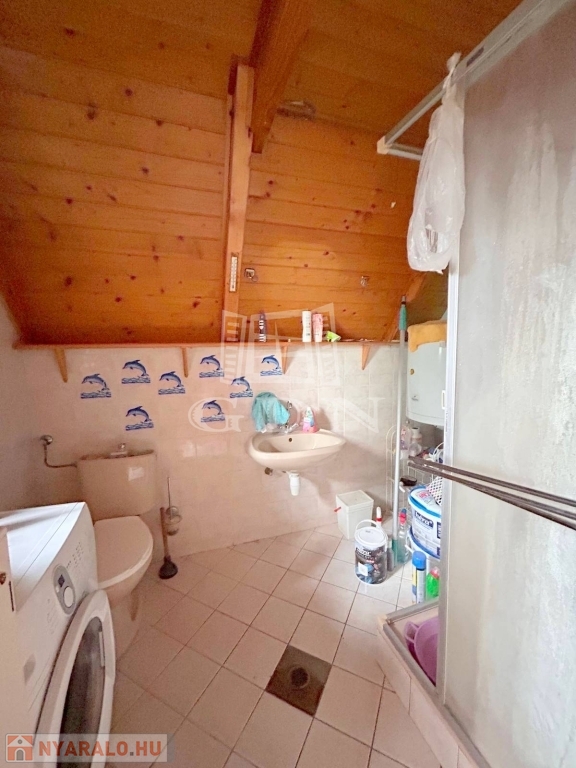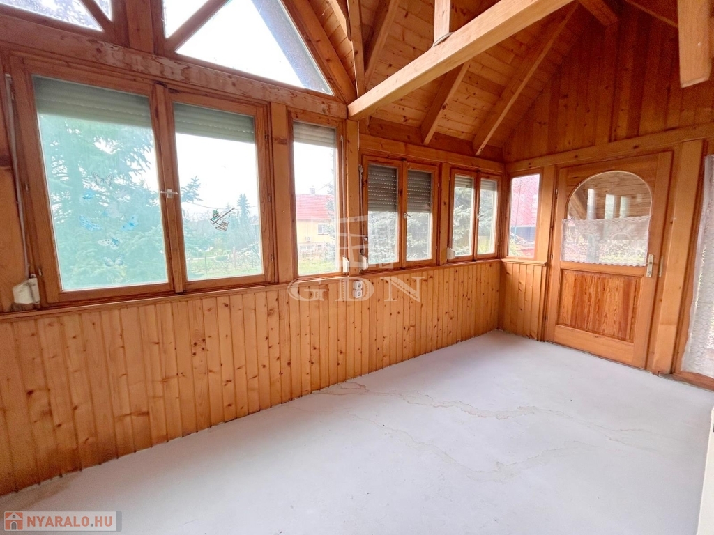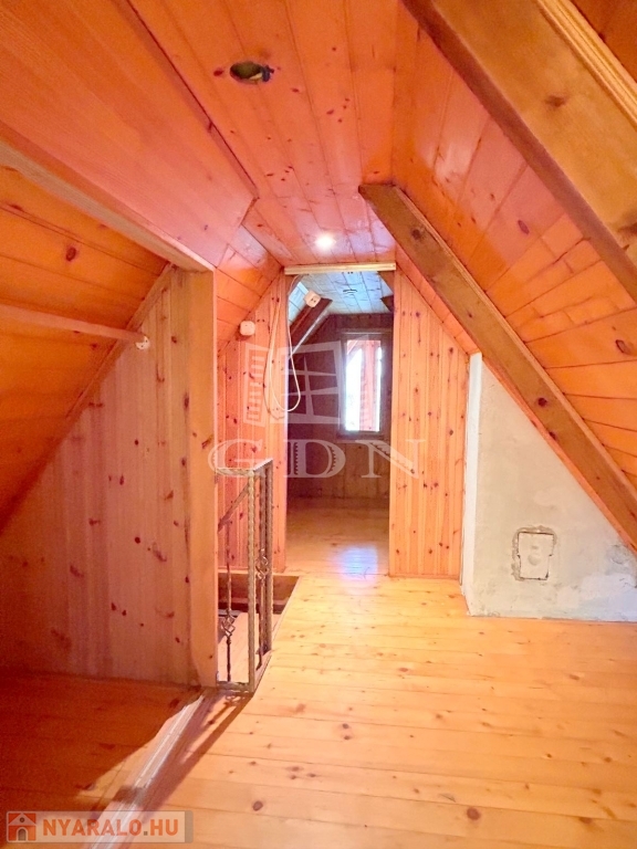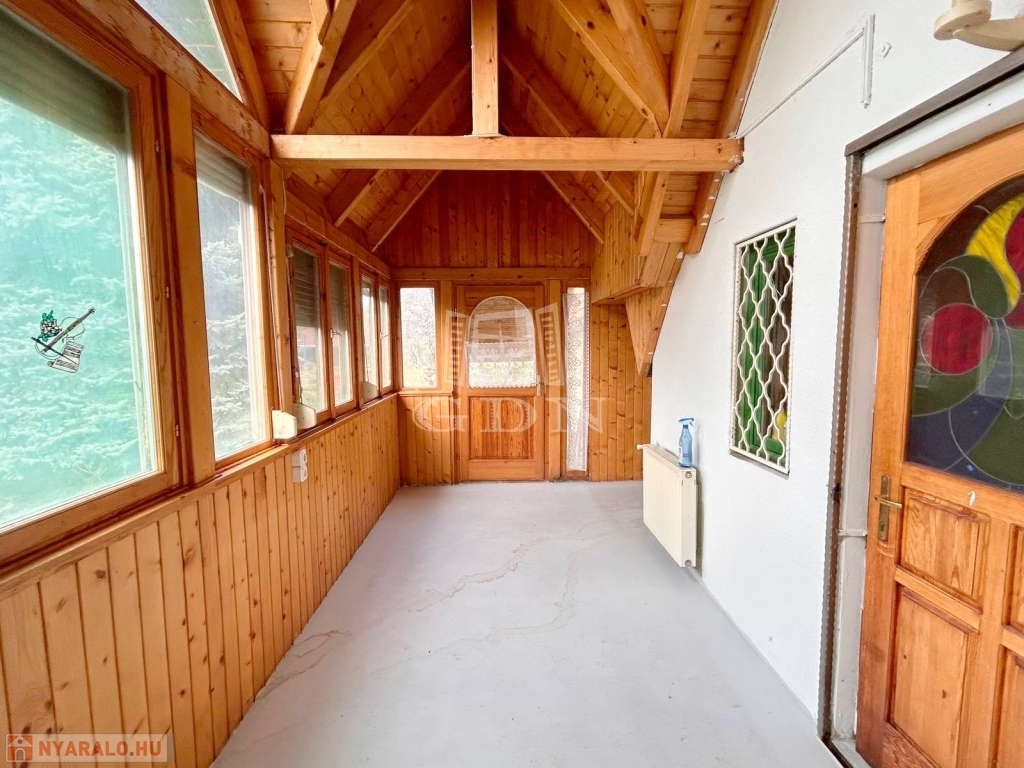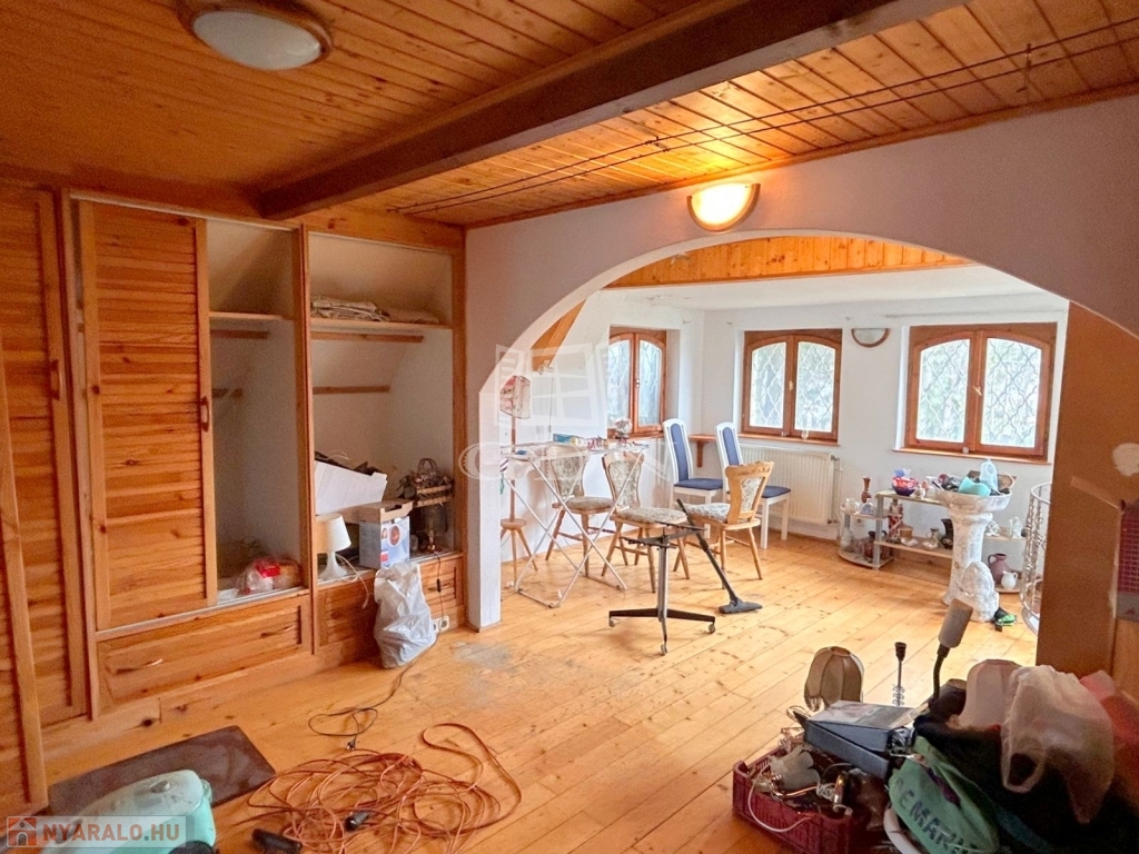 4748. Sukorón, 1997-ben bővített és hőszigetelt, 80-as években épült, háromszintes, egész évben lakható, gázközponti fűtéses, iker jellegű faház nyaraló eladó. Az alsó szuterén szinten található az étkező és a konyha kemencével. A faház földszinti lakóteréhez kapcsolódik 13,6 m2-es és 22,8 m2-es fedett, fűtött lakótér. A tetőtérben két félszoba és erkély található. A nyaralóhoz 532 m2-es, összközműves telekrész tartozik. Parkolás telken belül, nagy méretű fedett kocsibeállón lehetséges. Ár: 55 Mft