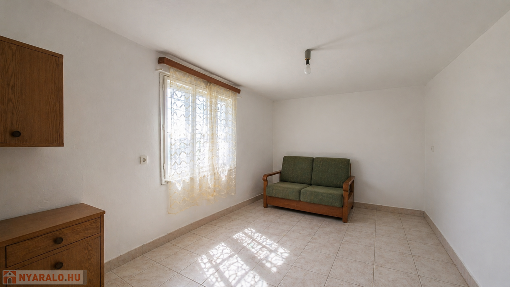 Sümegen, a belterület és külterület határán, aszfaltozott, rendezett utcában, állandó lakók és gondozott birtokok között kínáljuk ezt a 1300 m²-es, sík telken fekvő hétvégi házat.