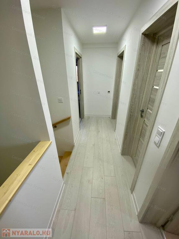 - Az épület 238 m2, kétszintes, újépítésű, 808 m2-es telek tartozik hozzá.