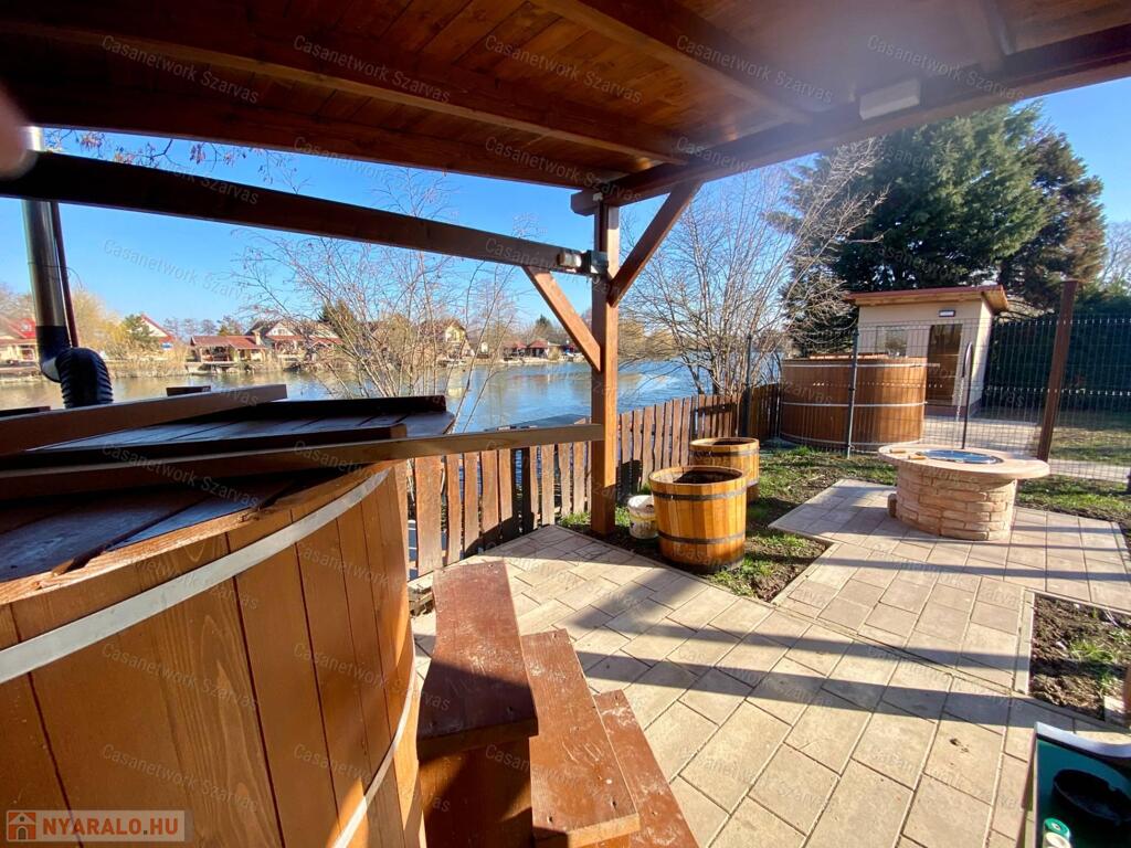 A Szarvasi CasaNetWork ingatlaniroda megvételre kínál az Alföld szívében, Szarvason, a Nagyfoki-holtágon egy 2024-ben befejezett, 238 m2 nettó alapterületű, könnyűszerkezetes ikernyaralót. Befektetésnek kiváló lehetőség: visszatérő vendégekkel rendelkezik! Nagyobb családnak, baráti társaságnak saját használati célra, saját mólós horgászati lehetőségként is kitűnő vétel a holtág csendes környezete miatt, a várostól 6 kilométerre, ahol számos program (séta az Arborétumban, az Erzsébet-ligetben; Vízi Színház; éttermek, cukrászdák sokasága; Mini Magyarország makettpark stb.) várja az ingatlan új használóit.