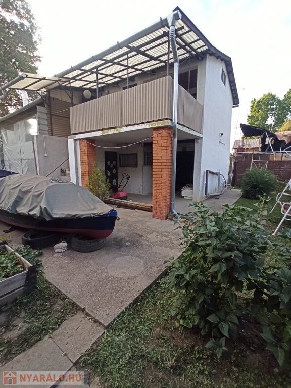 Szegeden a Tömörkény üdülőtelepen (Sárgán) a Tiszához közel (2. sor), kb. 2 x 36 m2-es. azaz 72 m2 két szinten, jelenleg 2 szobás (3 szobássá alakítható), 136 m2-es saját telken, tehermentesen eladó. A ház önálló helyrajzi számmal, villanyórával rendelkezik, saját tulajdonú ház, saját telekkel. Vezetékes víz van. Az elektromos hálózat felújított. A melegvizet villanybojler biztosítja. A fő ablakok újra cserélve. Az alsó szinten nagy fedett teraszról nyílik WC, külön fürdőszoba, abból nyílóan konyha, külön bejárattal 1 szoba van. Az emeleti részen is nagy (kb. 15 m-es) fedett terasz, előszoba és 1 nagy méretű szoba található. Minden helyiség járólappal burkolt. Az épület alul beton, felül tégla építésű. Az ingatlan közös költsége 5 eFt/hó, mely tartalmazza a szemétszállítást, vízhasználatot, közvilágítást, útkarbantartást. Parkolni is lehet a ház közelében. A két halászcsárda és a belváros közel. Rugalmasan költözhető.