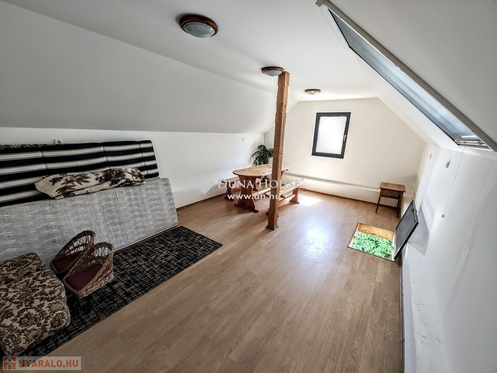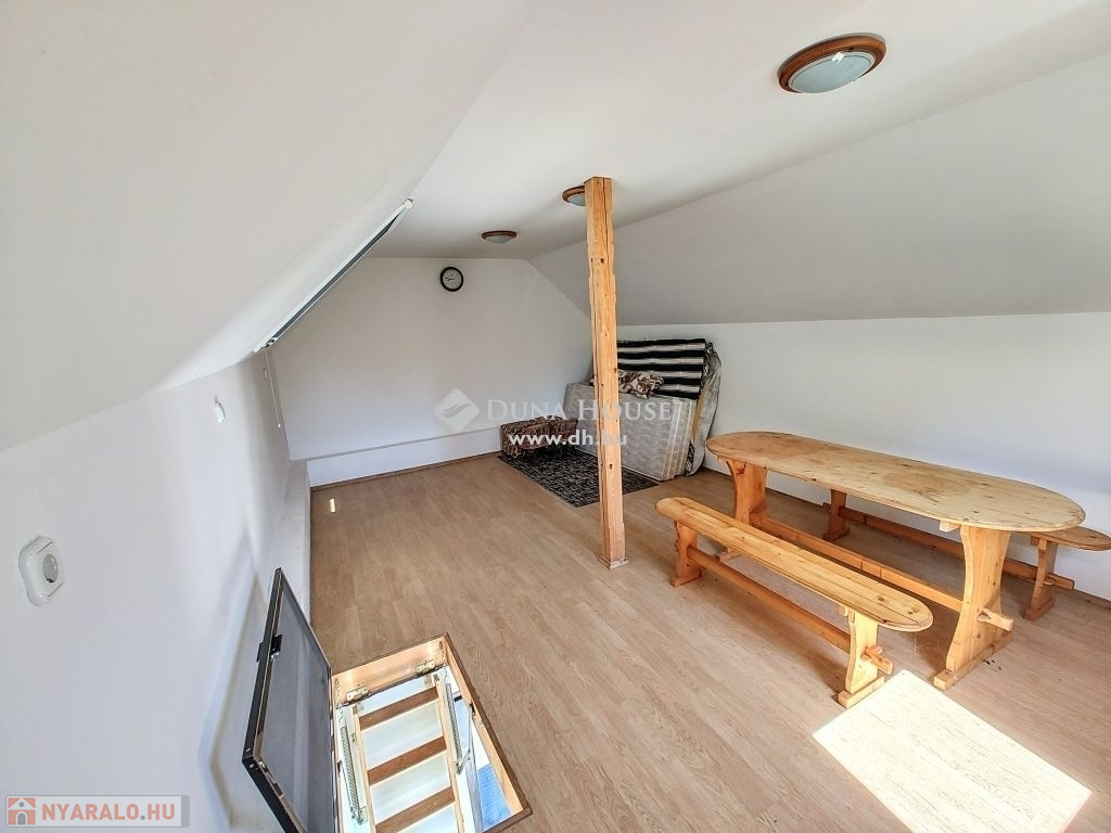 Az ingatlan egyik különlegessége a tetőtérben kialakított, 24 m²-es nagyszoba, amely tökéletes helyszín lehet baráti összejövetelekhez, pihenéshez vagy akár hobbiszobának is. A kertben kültéri zuhanyzó került kialakításra, ami a nyári időszakban különösen praktikus.
