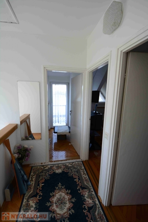Emelet/tetőtér: 2 szoba + fél szoba, fürdő, erkély a Duna felé, melyre két szobából közvetlen kijárat van