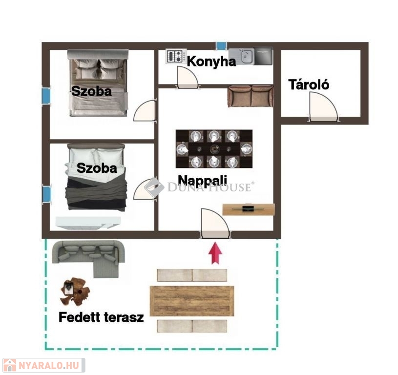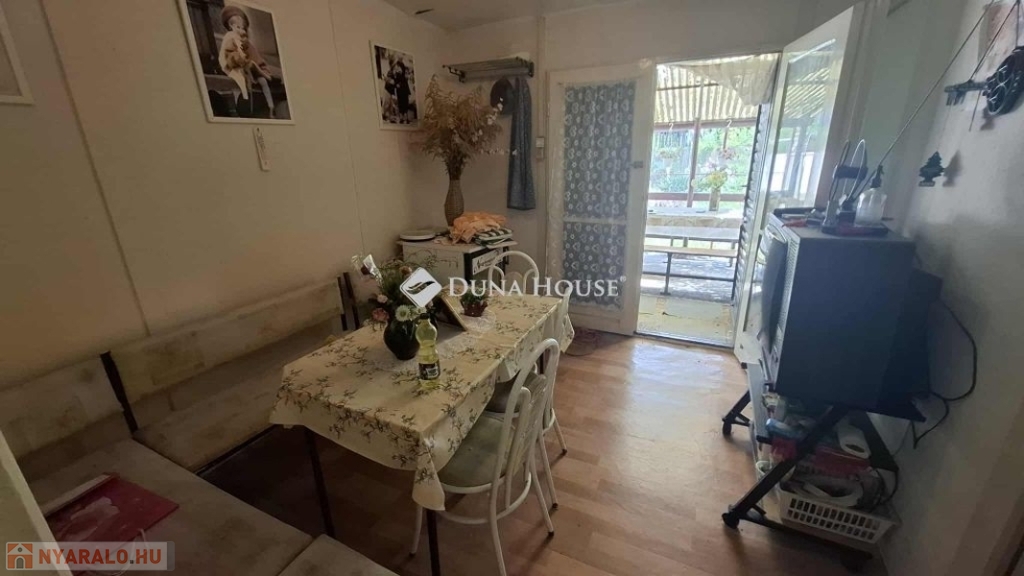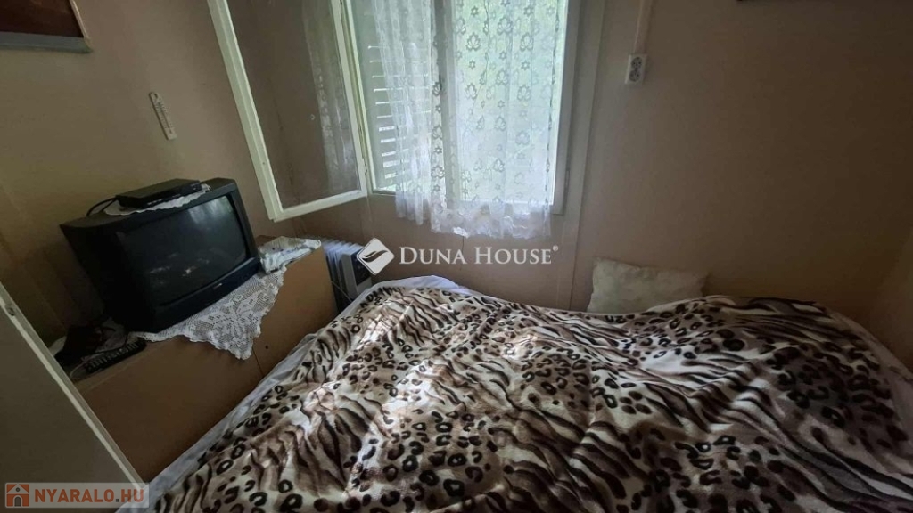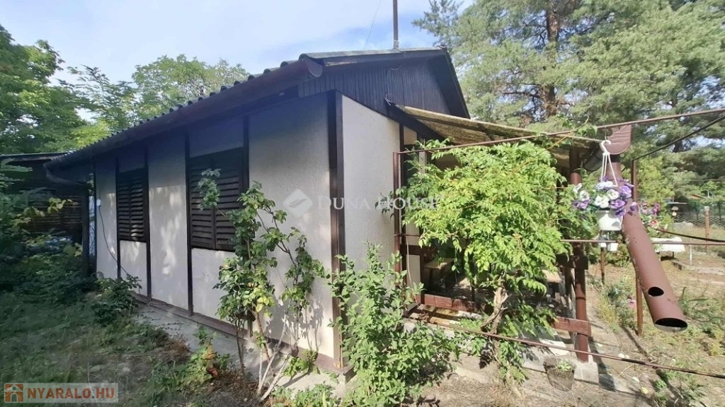 Tápiószentmárton Üdülőterületen - csendes, rendezett utcában - eladó - a gyógyvizes strand közelében - könnyűszerkezetes, szigetelt nyaraló bútorozottan - akár azonnali birtokba adással tehermentesen! (30 m2). Az ingatlan a fedett teraszon közelíthető meg és a nappali/étkezőbe jutunk. Innen balra 2 egymás mellett lévő fél szoba lett kialakítva. Szemben pedig a konyhát találjuk! A ház mellett még egy kisebb tároló is kiépítésre került! Kinti zuhany és mosdó segíti a kényelmet! A házba a villany bevezetésre került és telken belül a vezetékes vizet megtaláljuk!