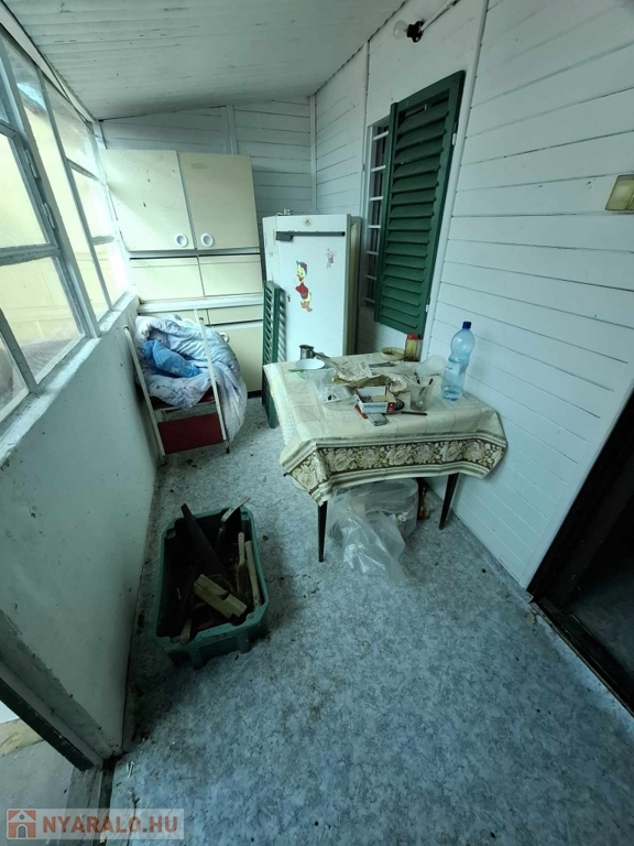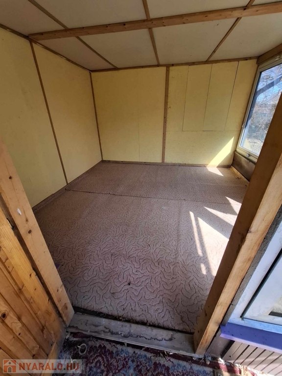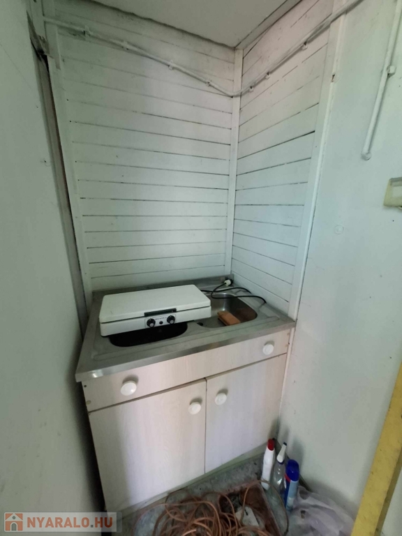 A másik ház (28 m2) - alsó szint 14 m2-es - 1 emeletes szigetelt könnyűszerkezetes nyaraló, melynek tetőterébe a ház háta mögött lehet feljutni. Hatalmas fedett terasz van előtte - 16 m2-es és innen lépünk be a tágas, világos nappali szobába. Tetőtere (14 m2) nem betonfödémes!