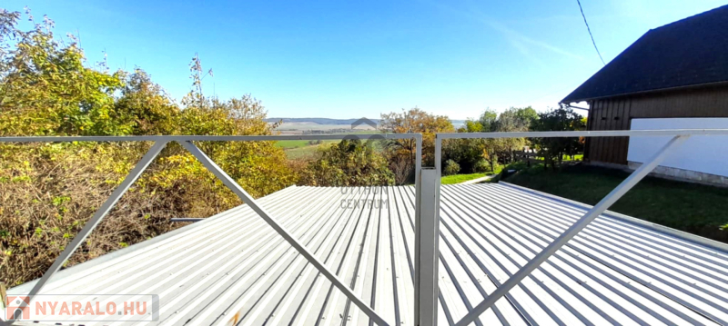 - Könnyűszerkezetből épült, hullámpalás tetővel, 5cm-es szigeteléssel